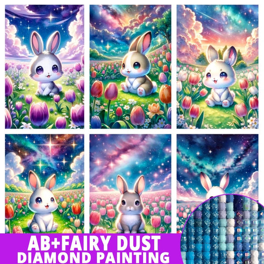 AB Diamond Painting op canvas - Tulp en Konijn met Fairy Dust en AB steentjes