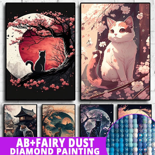 AB Diamond Painting op canvas – Katten & Kersenbloesem – Volledige bedekking – Keuze uit ronde of vierkante AB/Fairydust steentjes