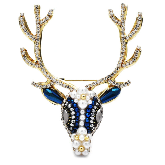 Kerst Broche Luxe Hert met Parel en Kristal – Feestelijke Unisex Accessoire