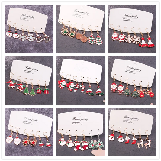 Kerst oorbellen set met kerstman, rendier, ster, bel en sneeuwpop