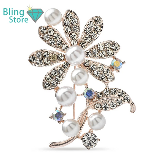 Broche Bloem met Parel en Bladmotief – Klassiek en Elegant Design
