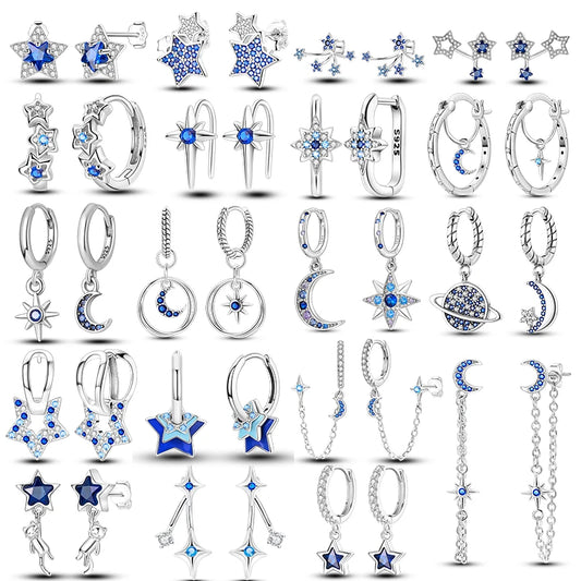 Oorbellen met Ster Maan Zon en Zirkonia Hangers – Lange Damesoorbellen