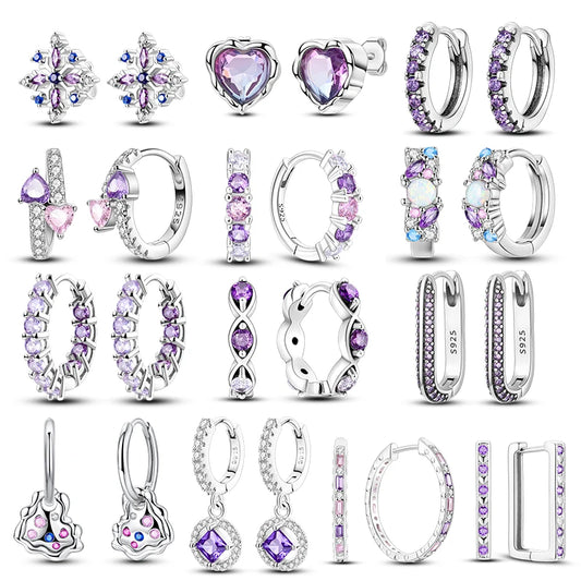 Oorbellen met Paarse Zirkoon en Hartdetail in Vloeibaar Metaaldesign