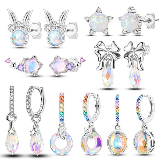 Oorbellen Sterren en Kristallen Strik – 925 Zilver en Opaal Accenten