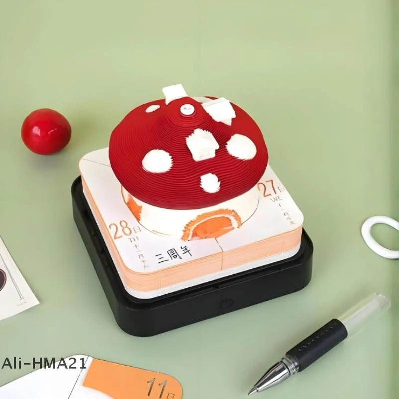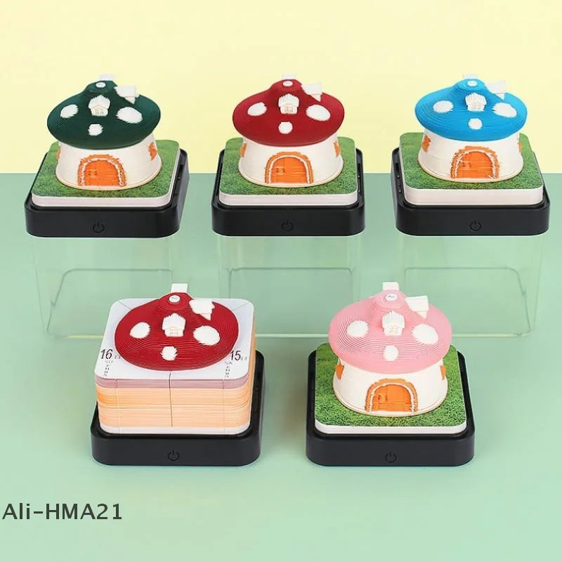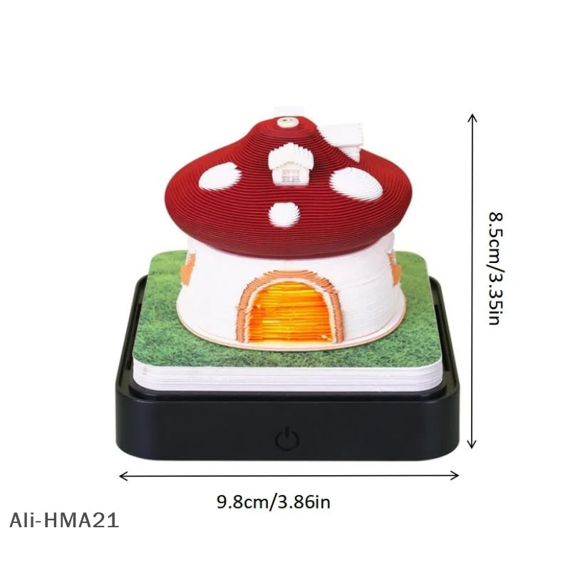 3D Papier Sculptuur Paddenstoel Huis Bureaukalender 2026 met LED Licht