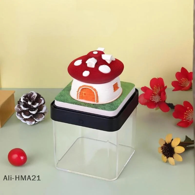 Breng een vleugje fantasie naar je werkplek met deze prachtige 3D Papier Sculptuur Paddenstoel Huis Bureaukalender. De combinatie van fijn uitgesneden papierlagen en zachte LED-verlichting creëert een betoverend tafereel dat elke ruimte doet opleven. De gedetailleerde paddenstoelvorm en warme gloed maken dit een echte blikvanger op je bureau, nachtkastje of boekenplank.