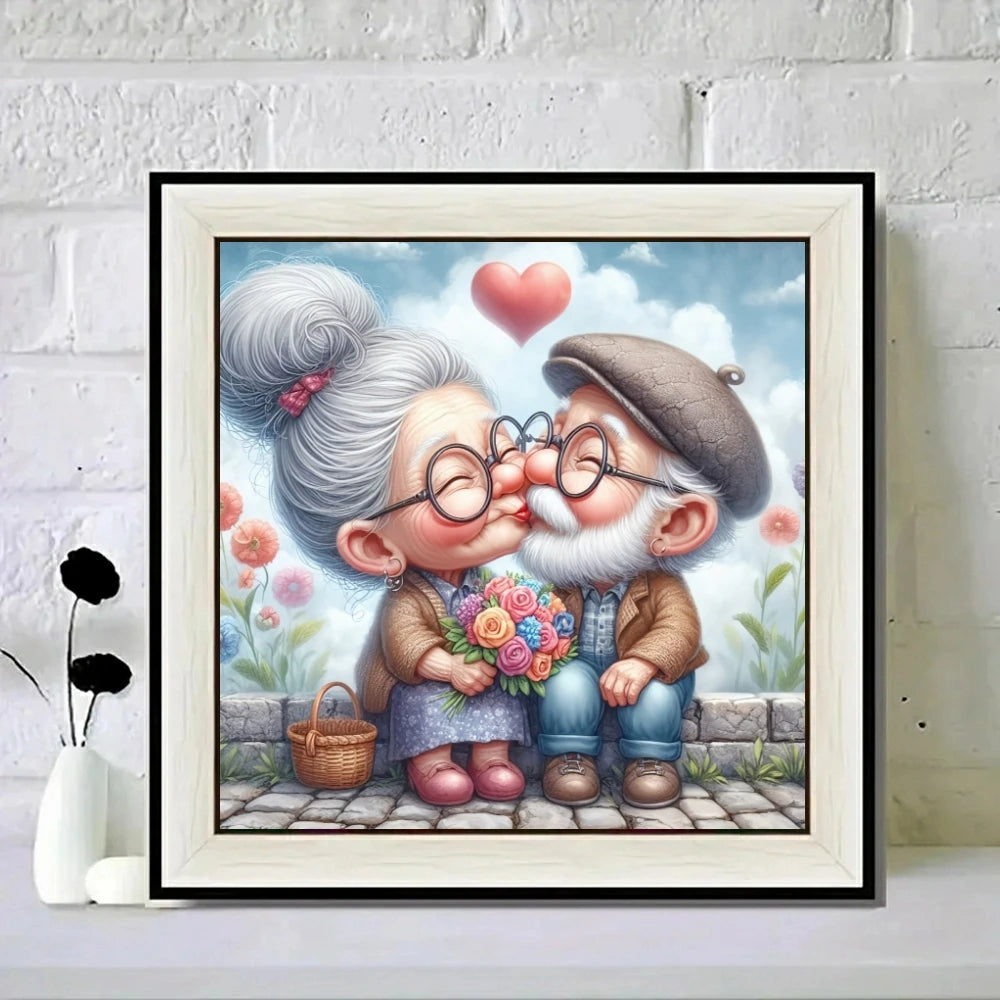 Deze vrolijke AB Diamond Painting op canvas toont een liefdevol getekend opa- en omafiguur met een sprookjesachtige uitstraling. De heldere kleuren en speelse details maken dit ontwerp ideaal voor jong en oud. Perfect als cadeau of als gezellige decoratie voor in huis.