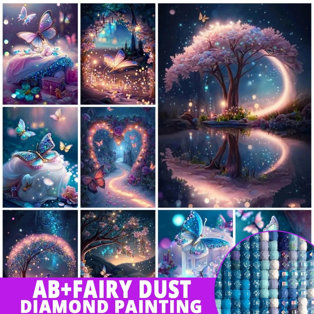 AB Diamond Painting op canvas - Fairy Dust Fantasy met Sterrenhemel, Boom & Vlinder