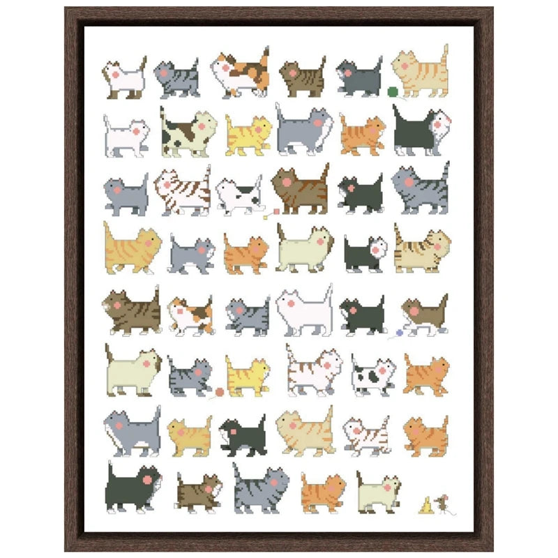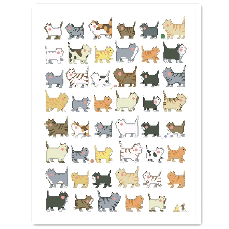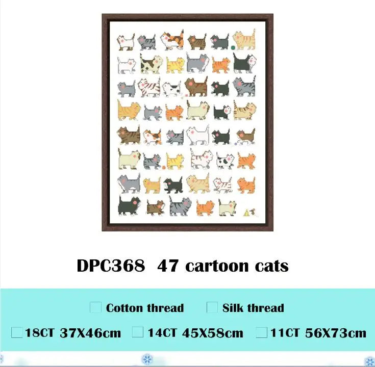 Dit uitgebreide borduurpakket bevat alles wat je nodig hebt om een prachtige afbeelding van 47 schattige cartoonkatten te borduren. Het ontwerp moet met de hand geborduurd worden en is perfect voor zowel beginnende als ervaren borduurliefhebbers.