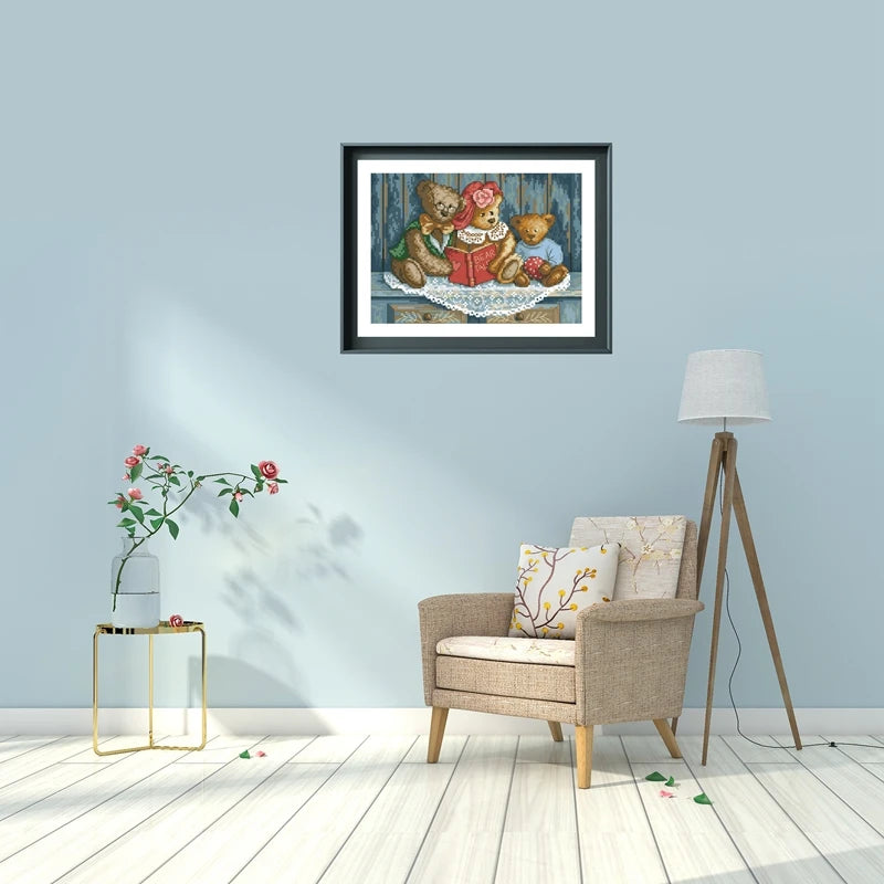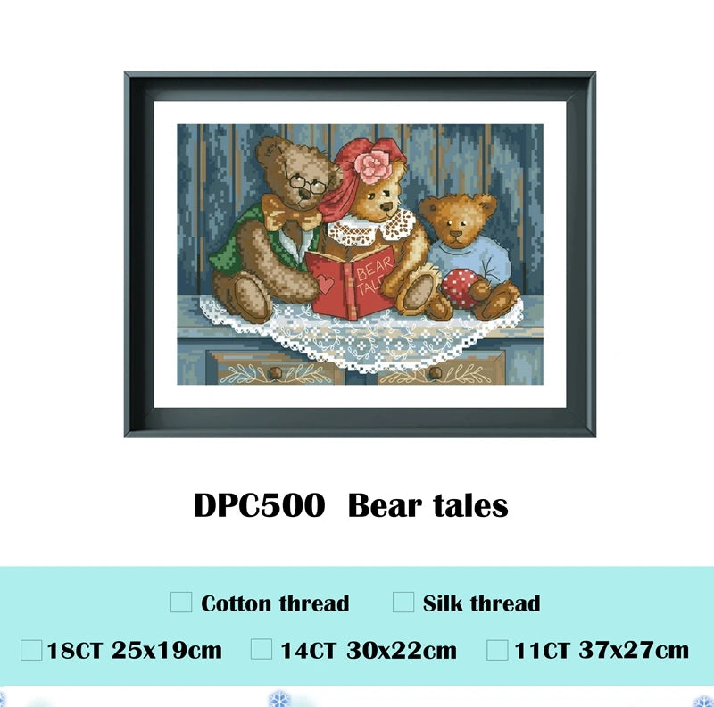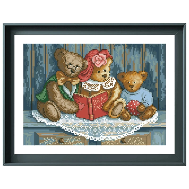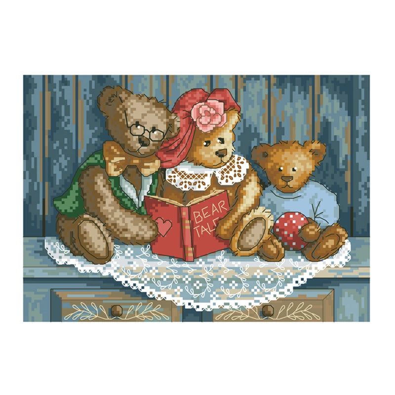 Dit borduurpakket bevat een schattig ontwerp van een vertellend beertje, perfect voor liefhebbers van creatieve ontspanning. Met de keuze uit verschillende stofdiktes zoals 18ct, 14ct en 11ct, werk je op een hoogwaardig onbedrukt canvas voor een strakke, professionele afwerking.