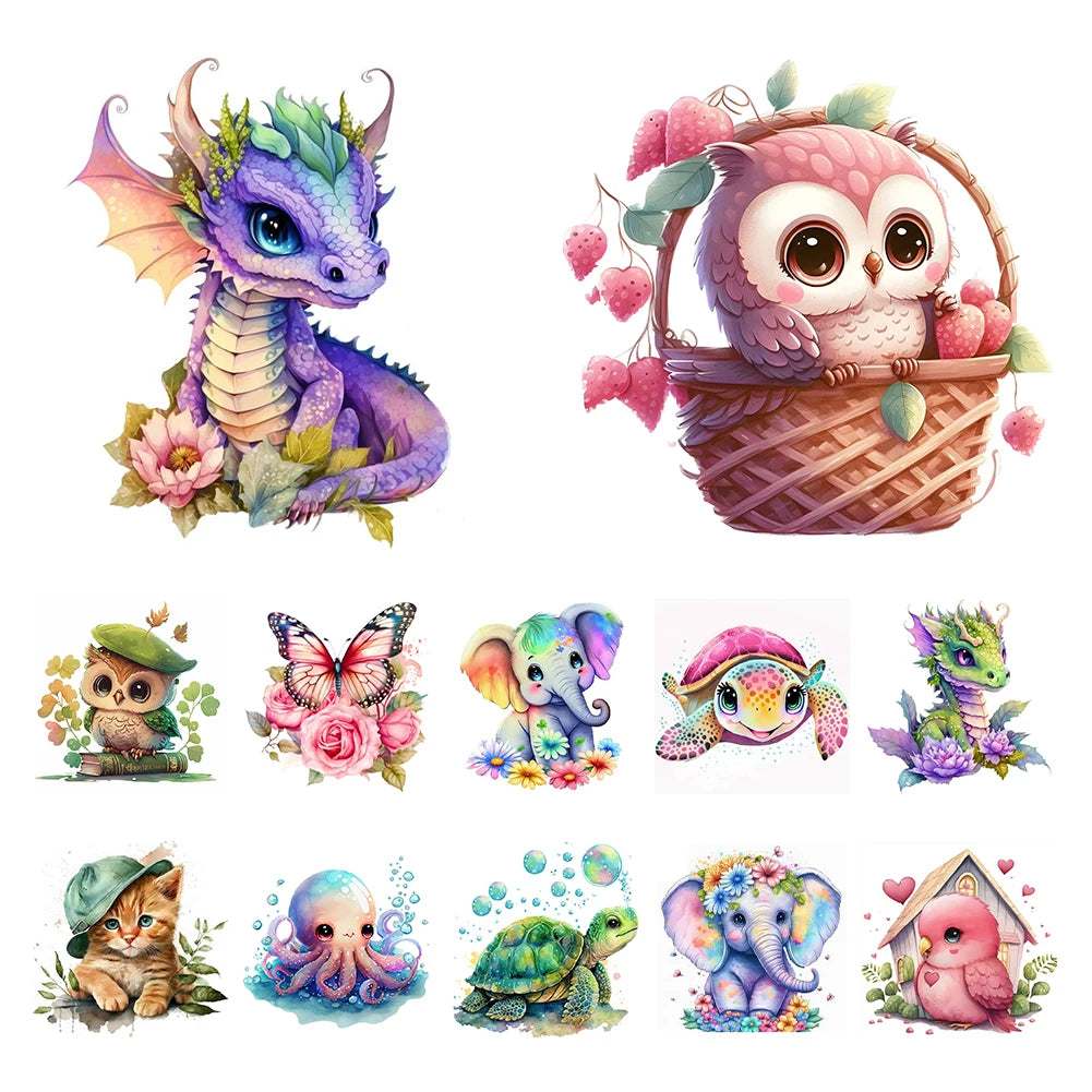 Borduurpakket dieren serie 20x20 cm met voorgedrukte canvas en katoendraad