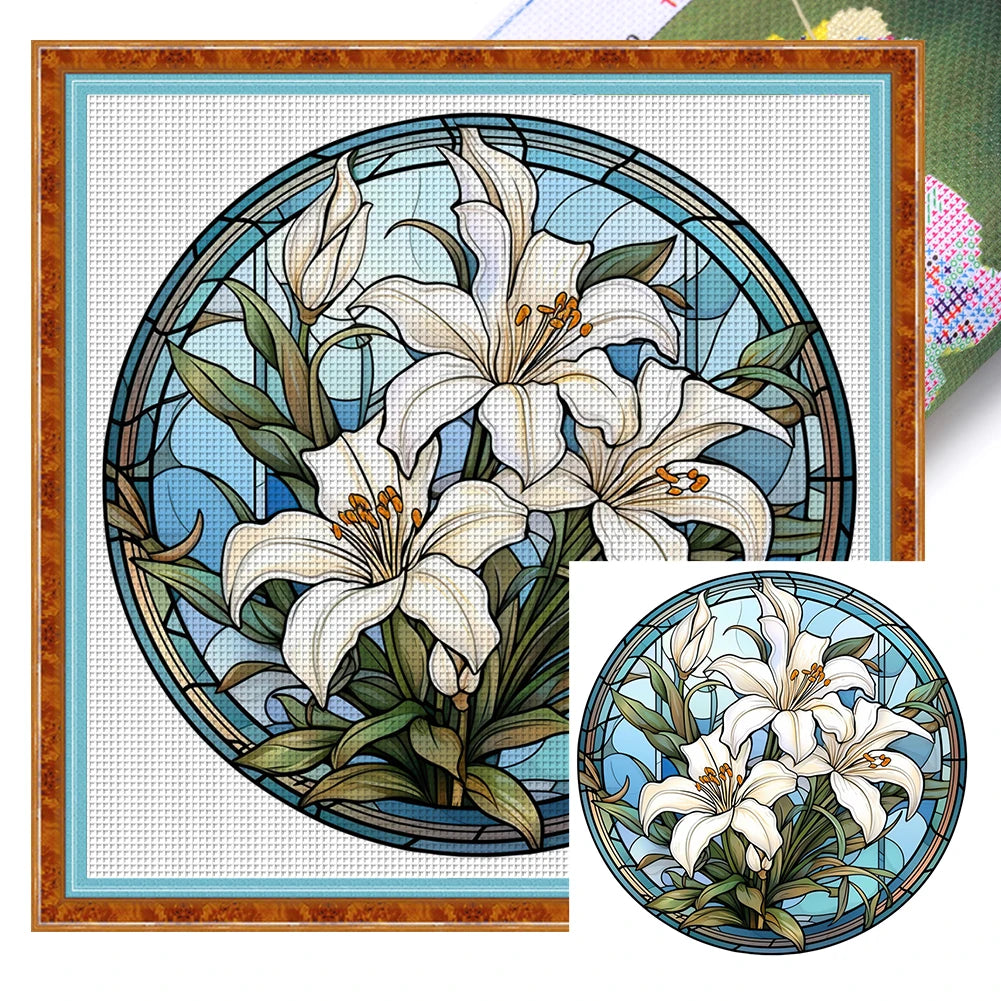 Borduurpakket Glas in lood design Bloem Patroon met Gedrukte Canvas en Eco-katoen
