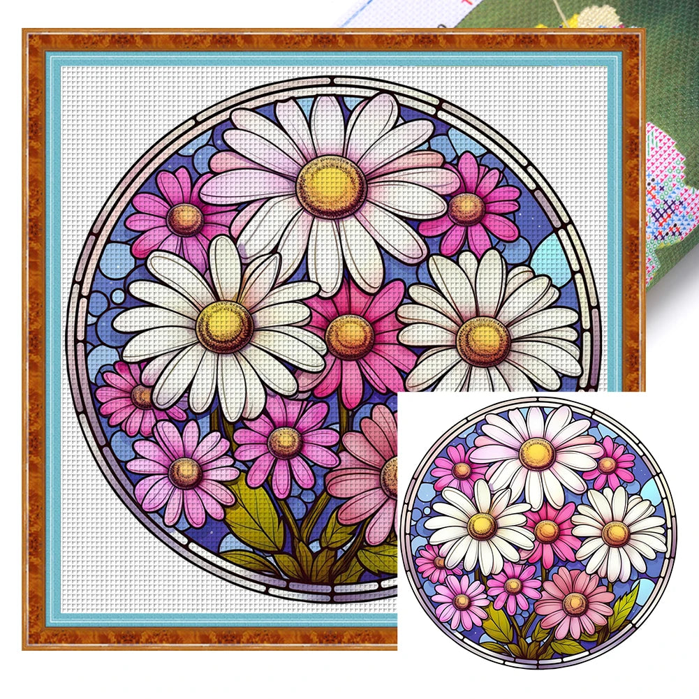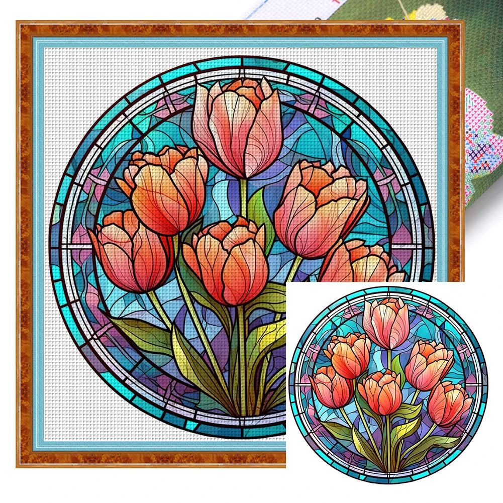 Dit borduurpakket bevat een schitterend ontwerp met een bloem in glas-in-loodstijl, perfect om een unieke en kleurrijke uitstraling aan je interieur te geven. Het patroon is duidelijk gedrukt op het canvas, waardoor het borduren soepel verloopt en het eindresultaat nauwkeurig en levendig wordt.