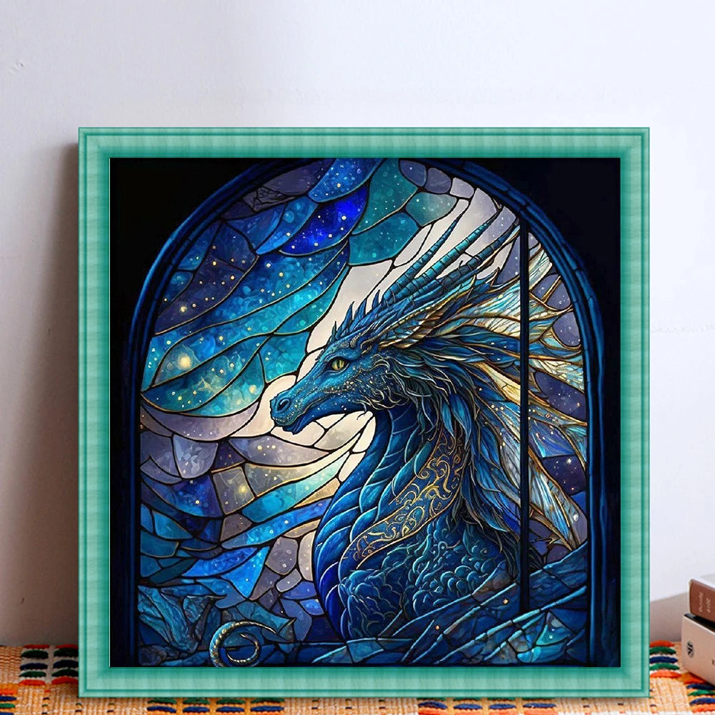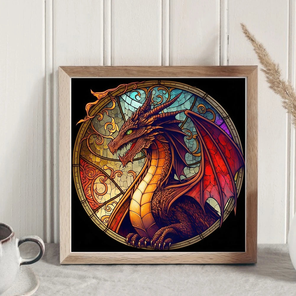 Borduurpakket glas-in-lood draak 40x40cm compleet met garen en patroon