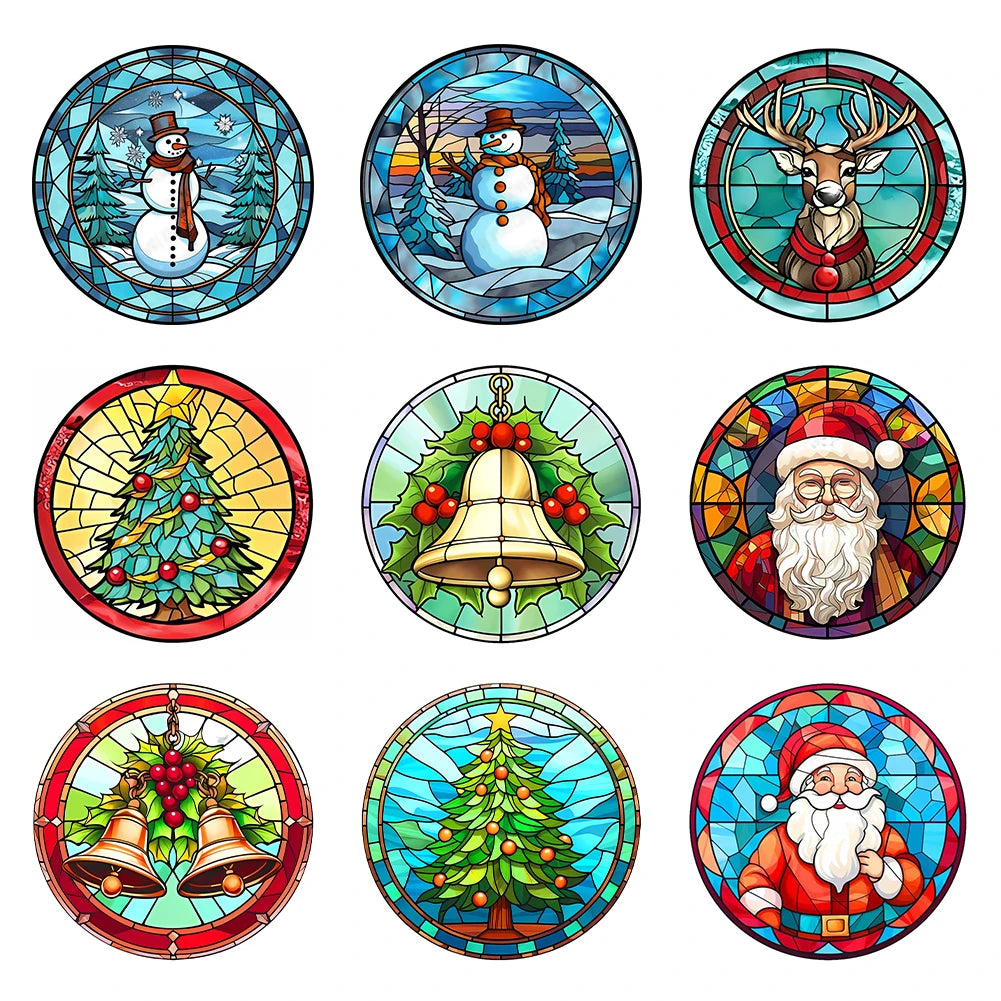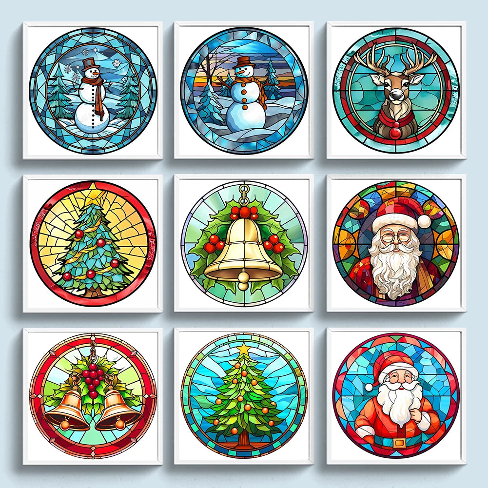 Borduurpakket Kerst – Glas-in-lood Kerstman, Kerstboom, Sneeuwpop