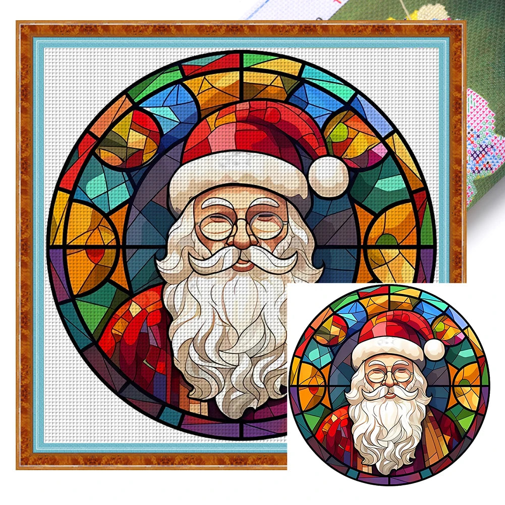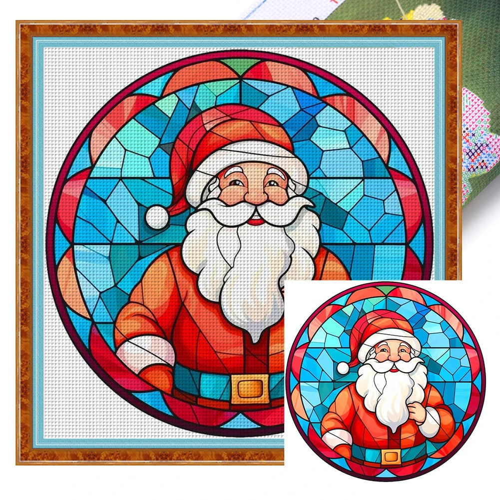 Met dit prachtige borduurpakket haal je direct de warme kerstsfeer in huis. Het ontwerp toont een kleurrijke glas-in-lood stijl met een vrolijke kerstman en een schitterende boom vol details. De levendige kleuren en verfijnde lijnen maken dit project tot een echte blikvanger in je interieur.