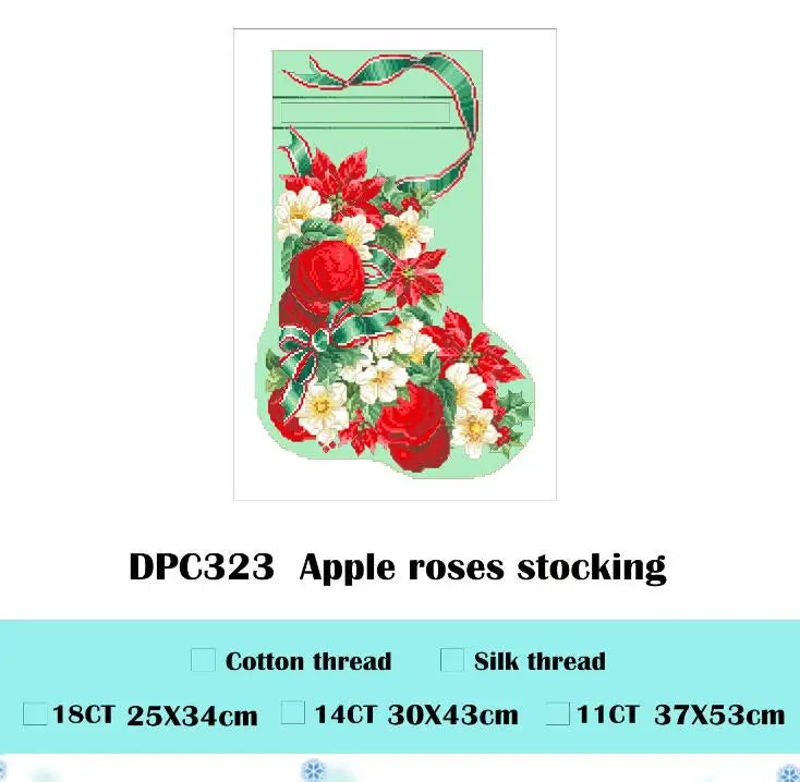 Borduurpakket Kerst – Kerstsok met Appelrozen Kruissteek