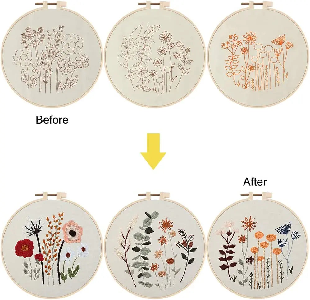 Borduurpakket Rond Bloemen – Compleet met Patronen en Garen