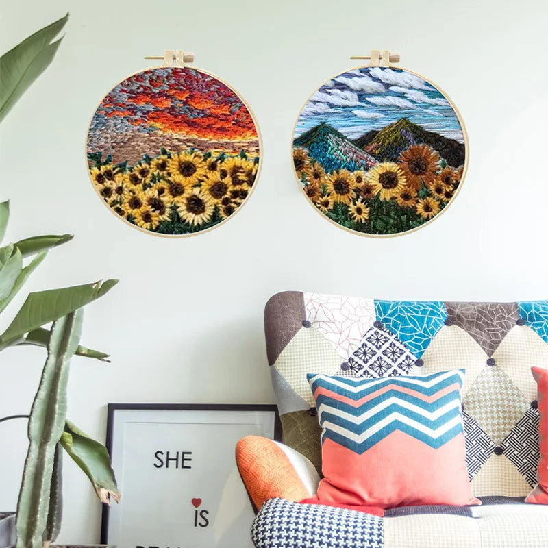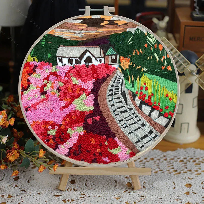 Laat je creativiteit tot bloei komen met dit prachtige borduurpakket met rond bloemenlandschap. De levendige kleuren en verfijnde details brengen een betoverende sfeer in elke ruimte. Dankzij de volledige kruissteektechniek creëer je een diepte-effect dat het borduurwerk een 3D-uitstraling geeft. Perfect voor zowel beginnende als ervaren borduurliefhebbers die houden van rustgevende handwerken en decoratieve kunst. Dit complete pakket bevat alles wat je nodig hebt om zelf een schitterend bloemenlandschap te maken dat je met trots kunt ophangen of cadeau doen. Een ontspannende en voldoening gevende hobby die elke dag een beetje mooier maakt.
