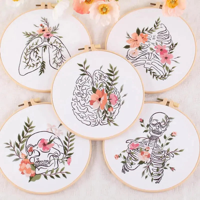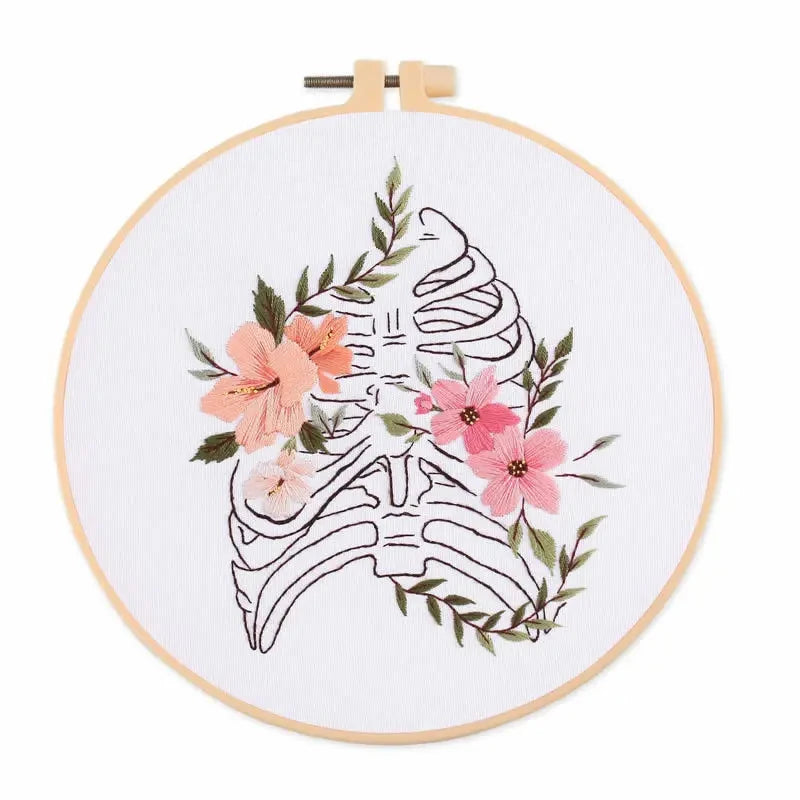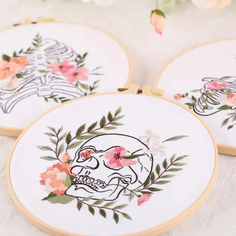 Maak kennis met dit creatieve borduurpakket waarmee je direct aan de slag kunt. De katoenen borduurstof is voorzien van een voorgedrukt patroon met een opvallend skeletdesign, perfect voor wie houdt van een unieke twist in handwerk. Dankzij de duidelijke instructies en meegeleverde accessoires is dit pakket ideaal voor beginners én hobbyisten die op zoek zijn naar ontspanning en creativiteit.
