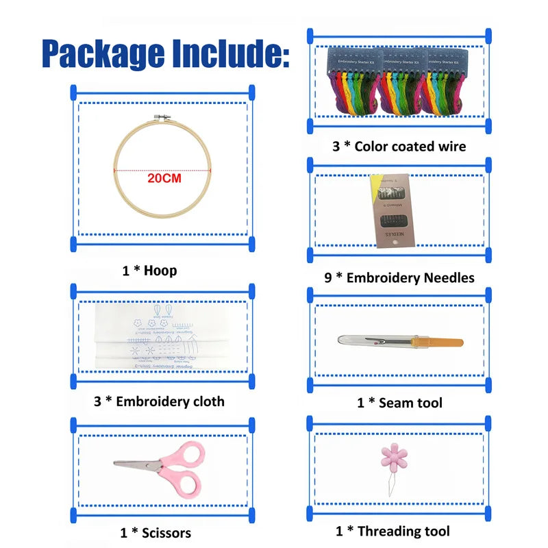 Begin direct met borduren dankzij dit complete borduurpakket rond, ideaal voor beginners die hun eerste stappen zetten in de wereld van handborduren. Het pakket bevat alles wat je nodig hebt om meteen aan de slag te gaan: voorbedrukte stoffen, kleurrijke garens, stevige naalden, een bamboe borduurring van 20 cm, schaar, draadinrijger en tornmesje. De stoffen zijn van hoge kwaliteit, voelen zacht aan en zijn goed ademend – prettig om mee te werken en geschikt voor langdurig gebruik.