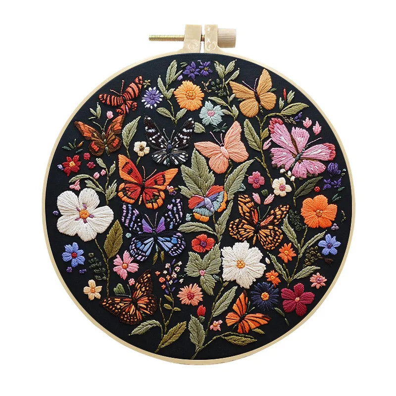 Het pakket bevat een stevige borduurring, naald, kleurrijke garens en een gedetailleerd patroon. De stoffen zijn duurzaam en voelen prettig aan, zodat je comfortabel kunt werken en genieten van het creatieve proces. Dankzij de nauwkeurig afgestemde kleuren komt het ontwerp van vlinder en plant prachtig tot leven.