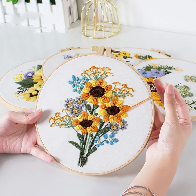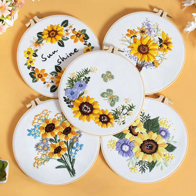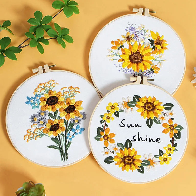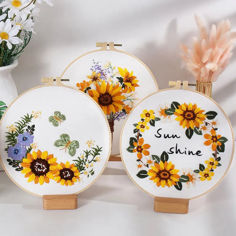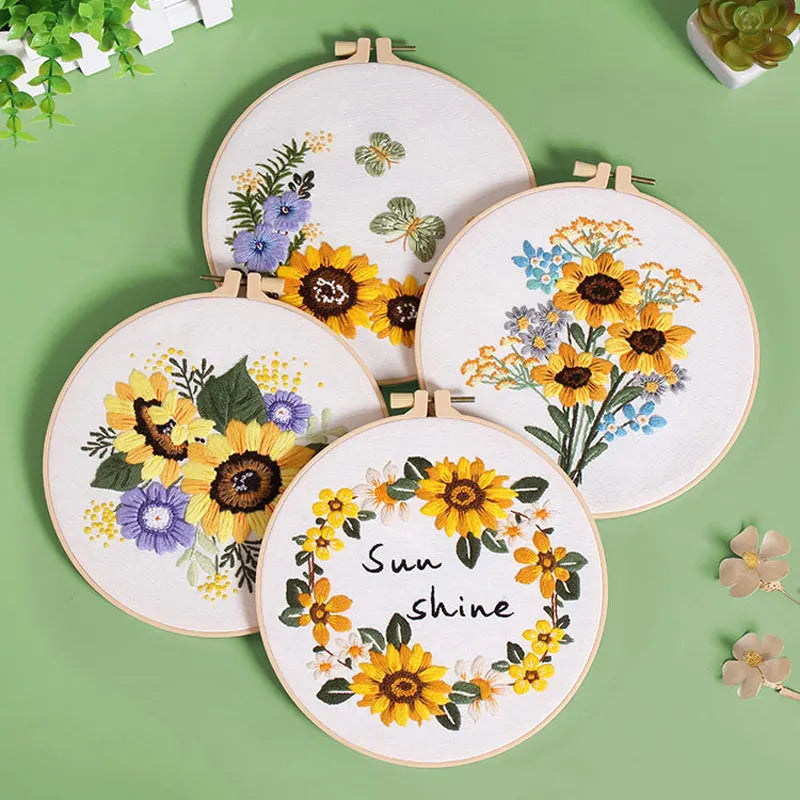 Borduurpakket Rond Zonnebloem – Compleet Startpakket met Garen en borduurring