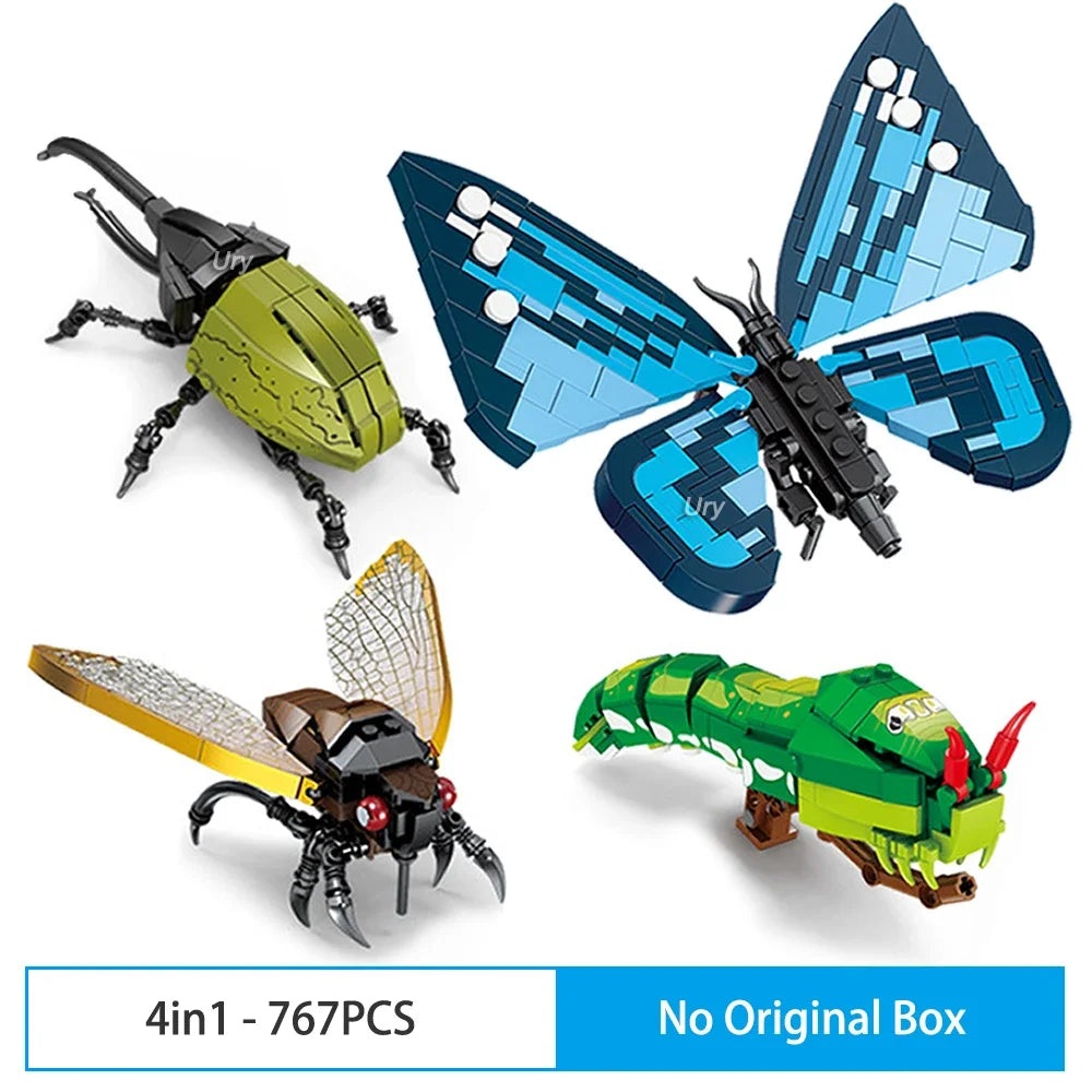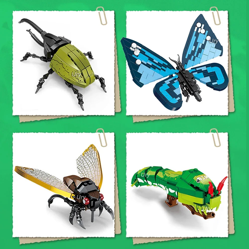 Bouwpakket Insectenmodel Bij, Vlinder, Krekel & Sprinkhaan – Creatief Blokkenplezier
