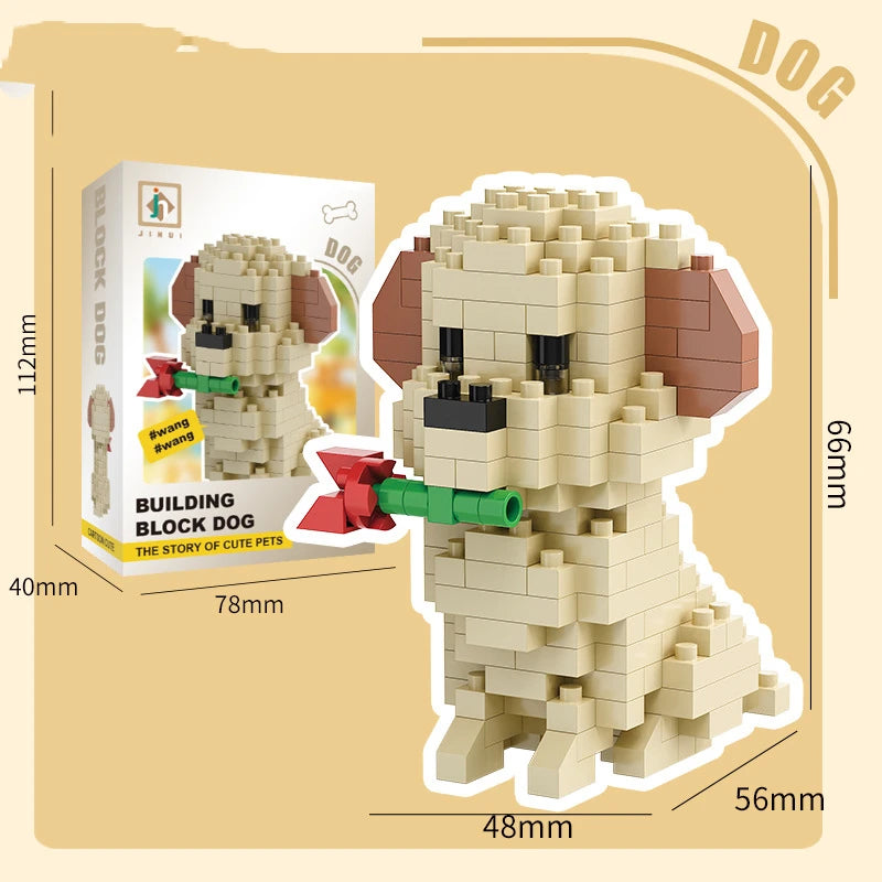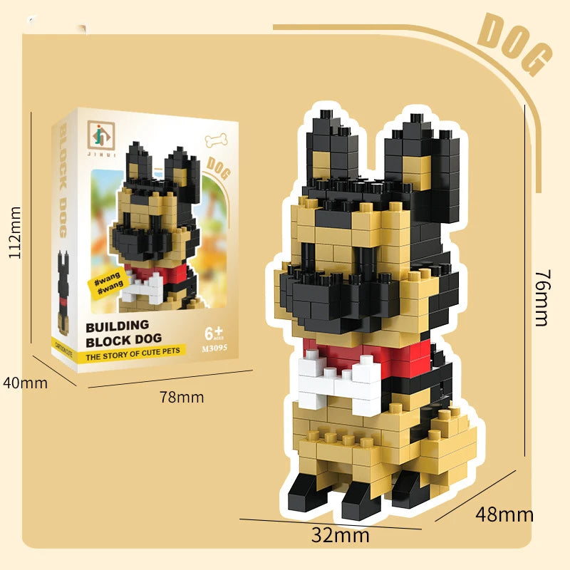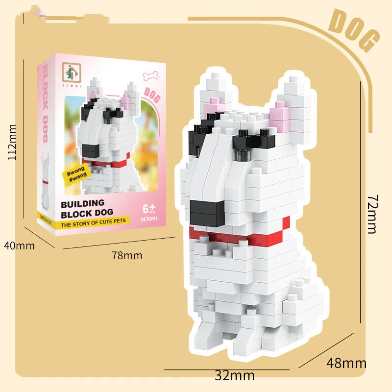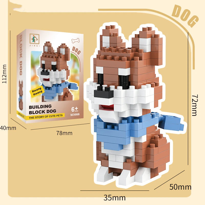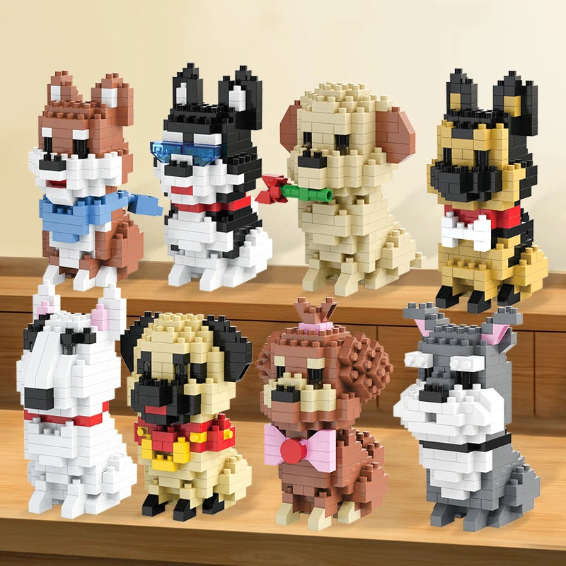 Bouwpakket schattige Husky & kat speelgoed – mini blokjes puzzelplezier