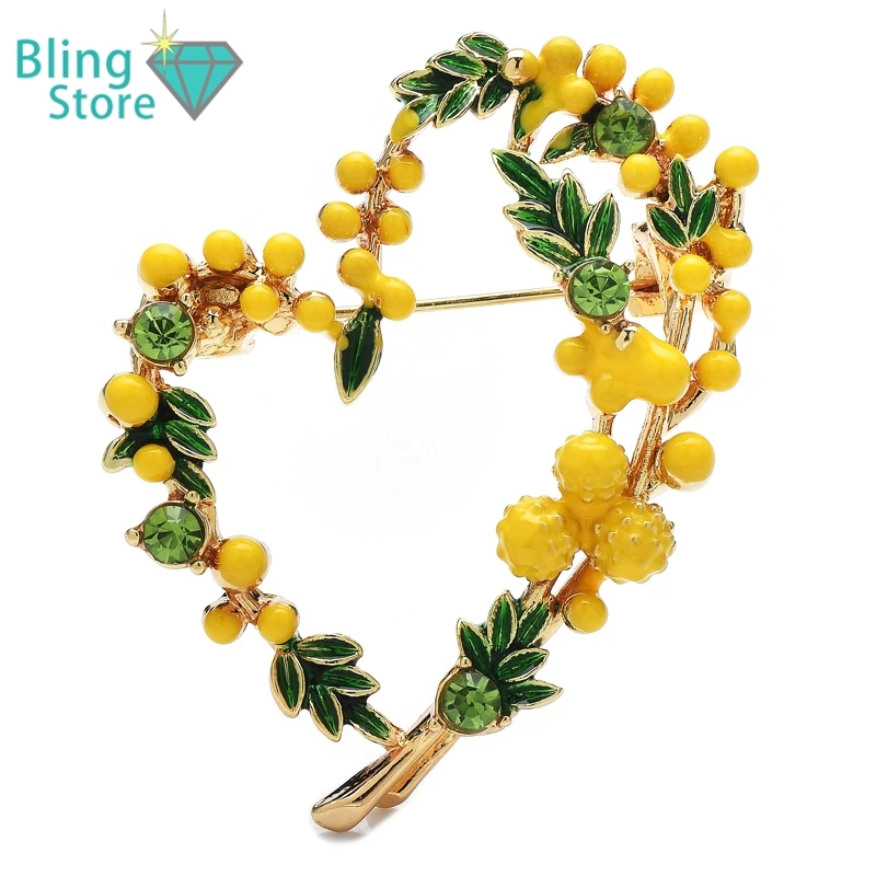 Broche Bloem Hartvormige Fruitspeld in Franse Stijl – Enamel Design