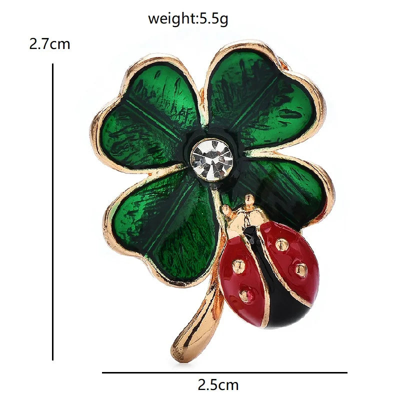 Laat je outfit stralen met deze kleurrijke broche in de vorm van een klaverblad met een schattig lieveheersbeestje. De levendige kleuren en fijne afwerking geven deze accessoire een frisse, natuurlijke uitstraling. Een subtiele blikvanger voor elke gelegenheid.