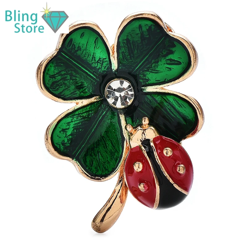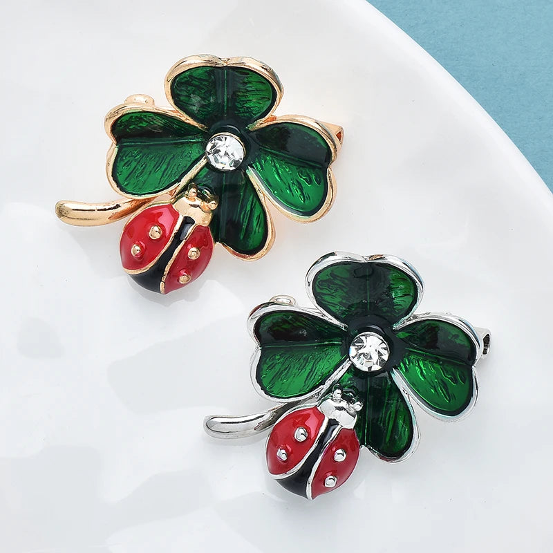 Broche Bloem Klaver met Lieveheersbeestje – Emaille Speldje voor Dames en Heren