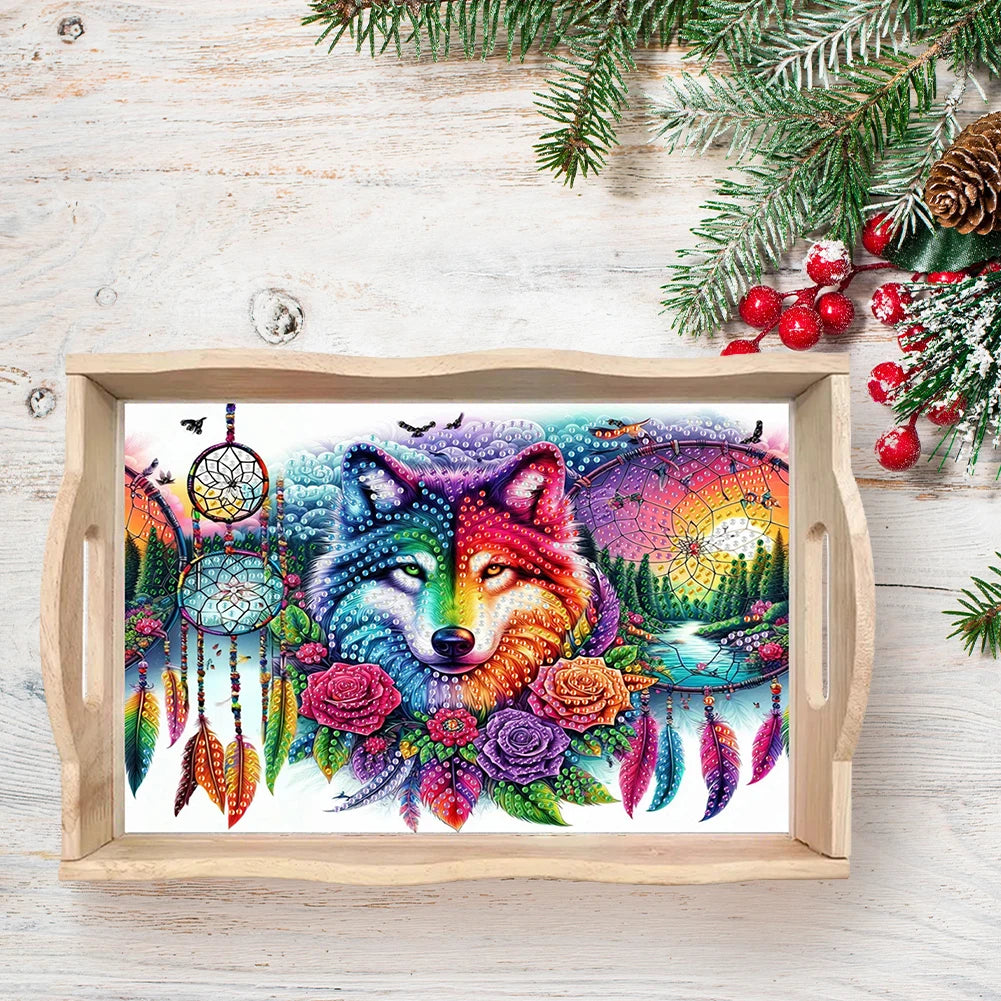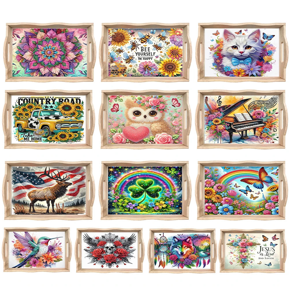 Diamond Painting Dienblad Hout - Kleurrijk Serveerblad voor Eten en Decoratie