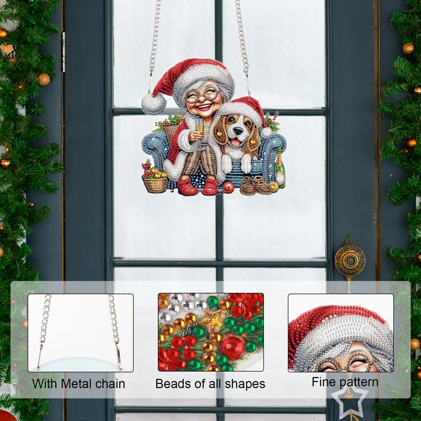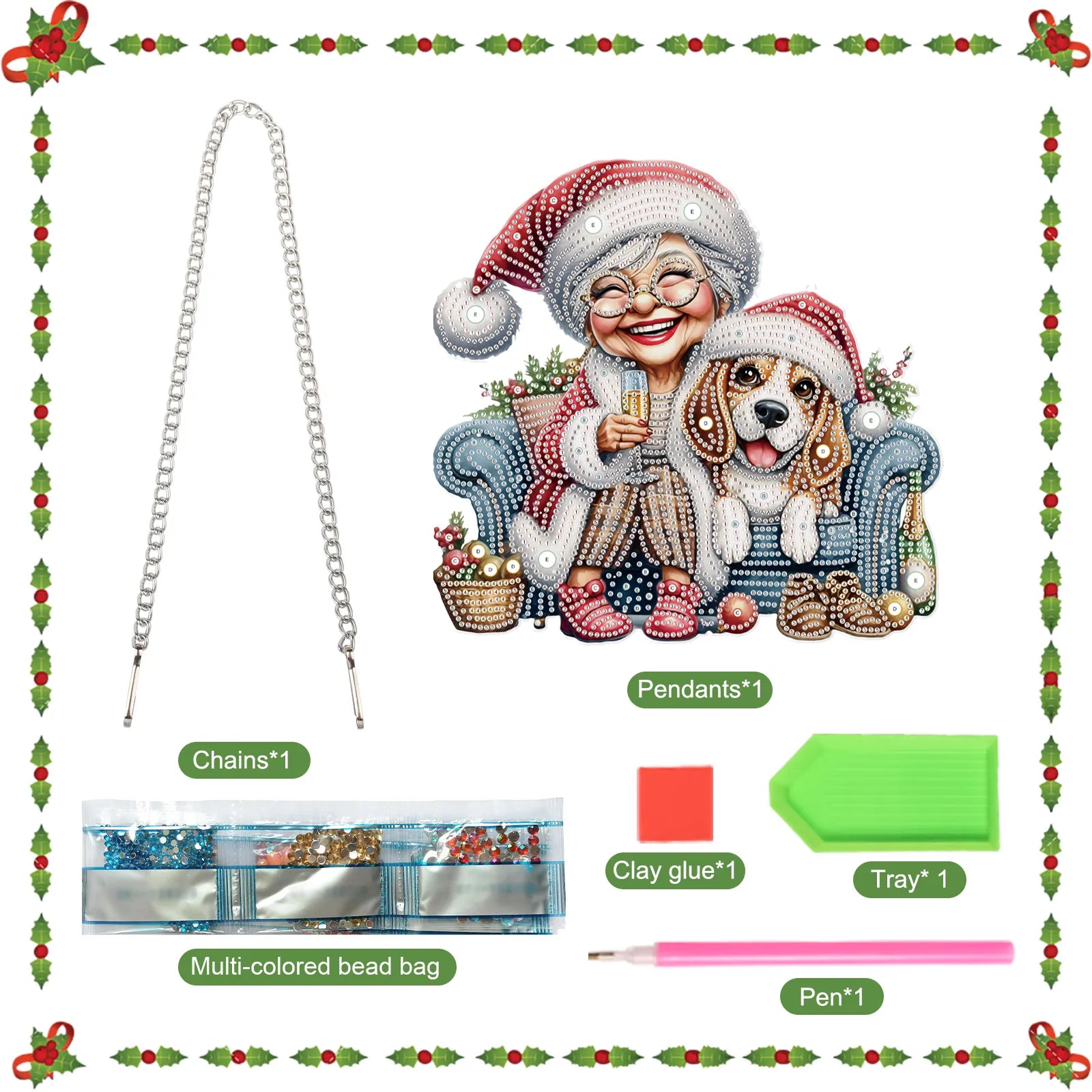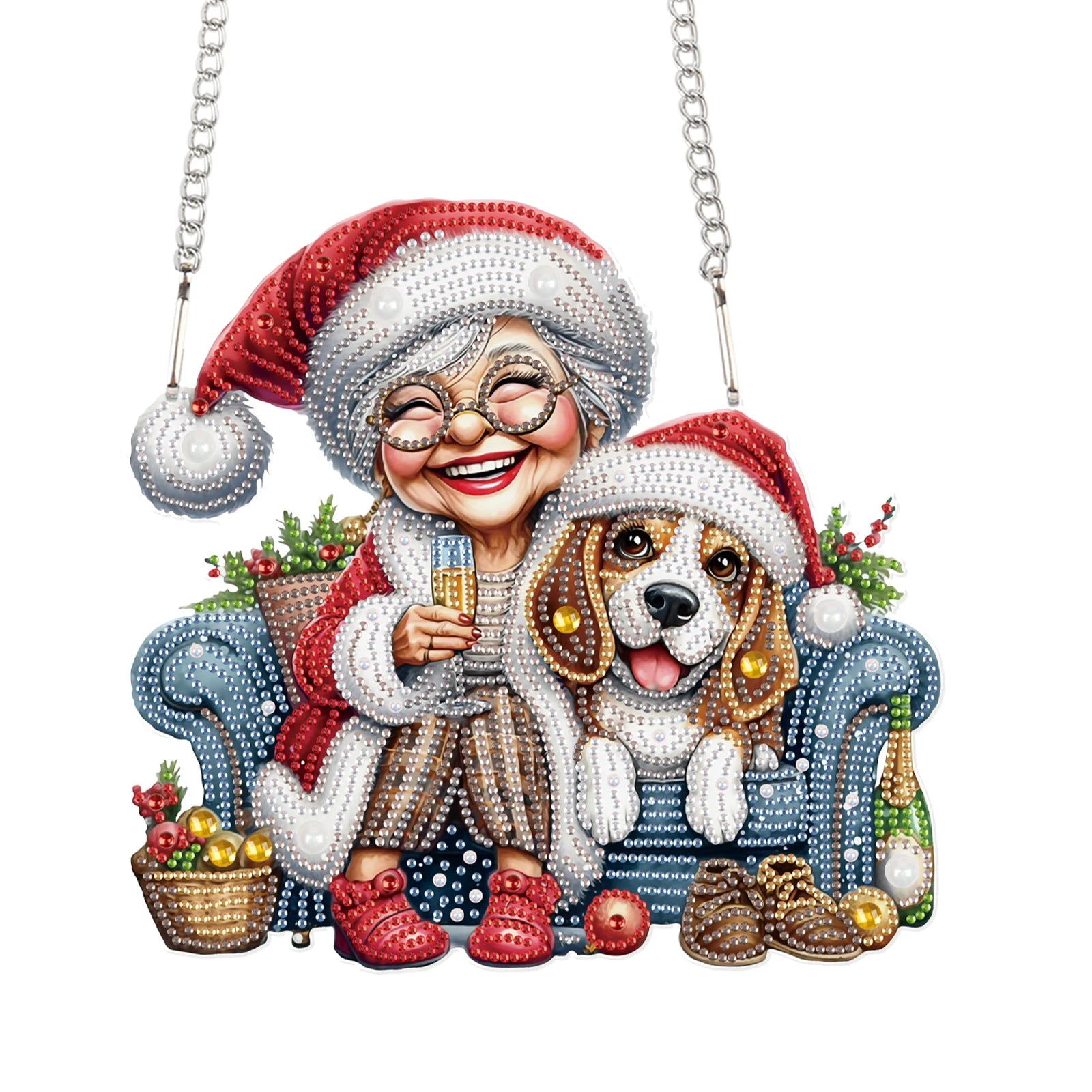 Diamond Painting Hangend Kerst Ornament - Happy Oma met puppy