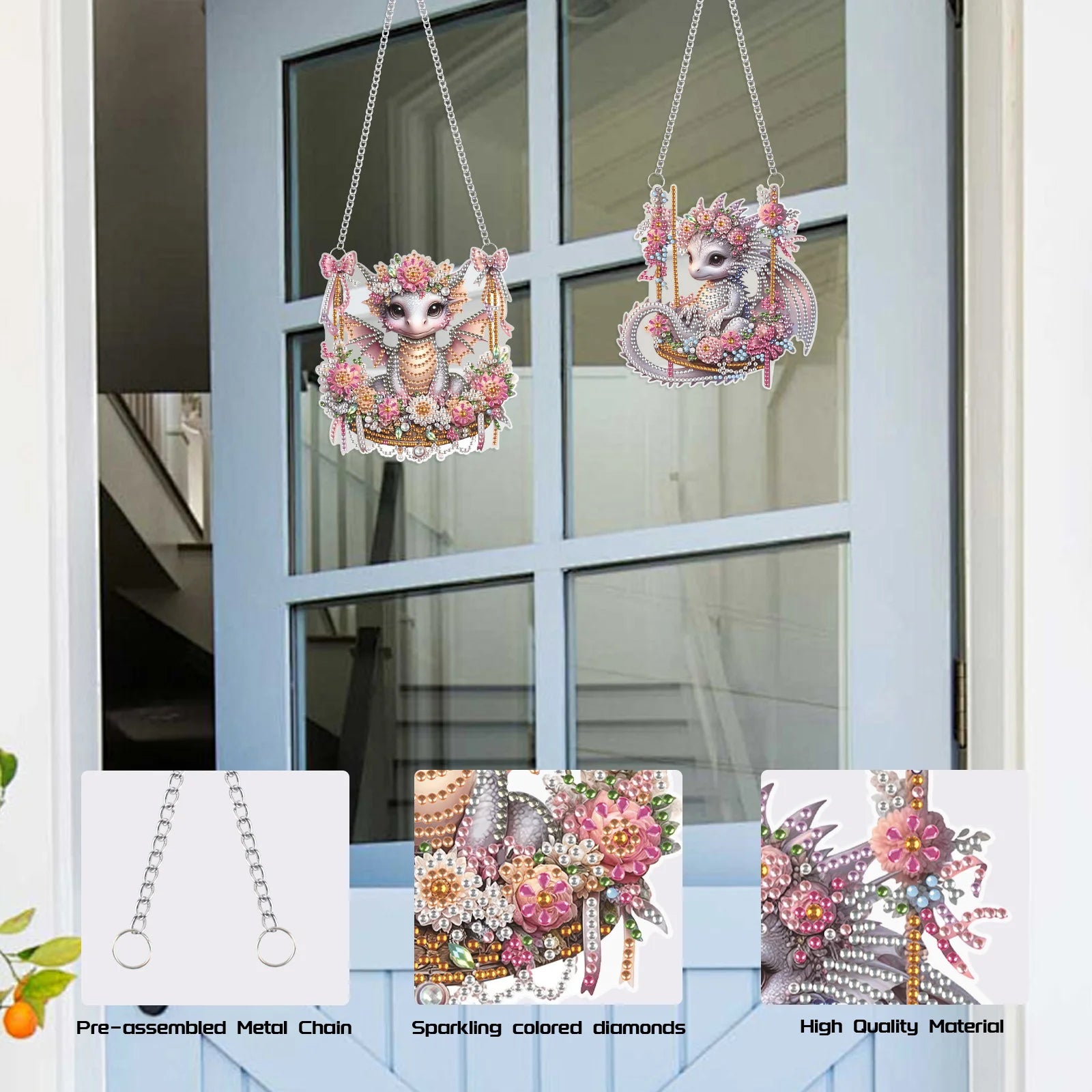 Diamond Painting Hangend Ornament - Schattige Draken (2 stuks)