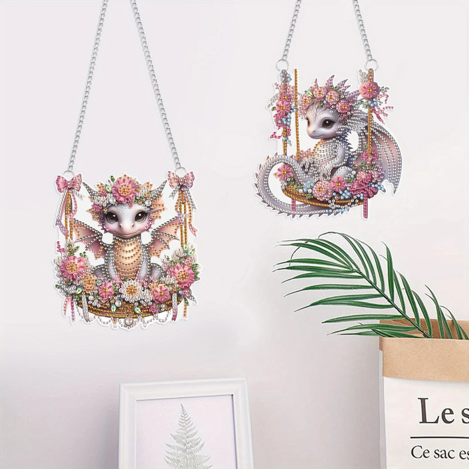 Breng een magische touch in je interieur met deze set van Diamond Painting Hangende Ornamenten met schattige draken. Deze set van 2 decoratieve hangers is perfect voor zowel beginners als ervaren creatievelingen.