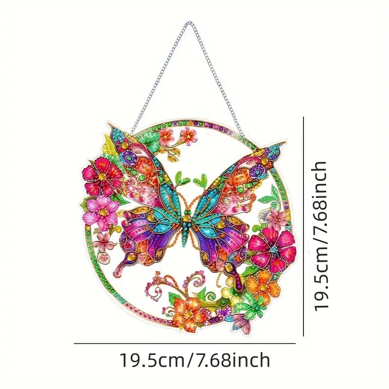 Creëer een prachtig decoratief accent met dit unieke Diamond Painting hangende ornament. Dit ontwerp combineert een charmante vlinder met een stijlvol welkom bord, perfect om je deur of raam een persoonlijke touch te geven. De levendige Diamond Painting steentjes zorgen voor een schitterende en kleurrijke uitstraling, ideaal om je interieur op te fleuren of als een warm welkom voor gasten. Dit ornament is eenvoudig te maken en biedt een ontspannende en creatieve bezigheid.