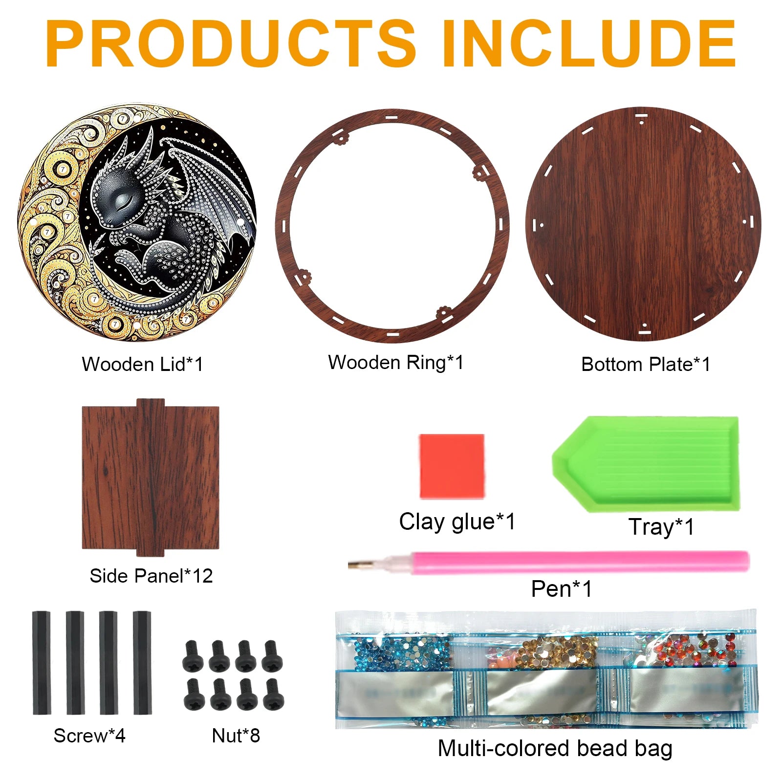 Diamond Painting houten ronde opbergdoos – creatieve organizer voor interieur