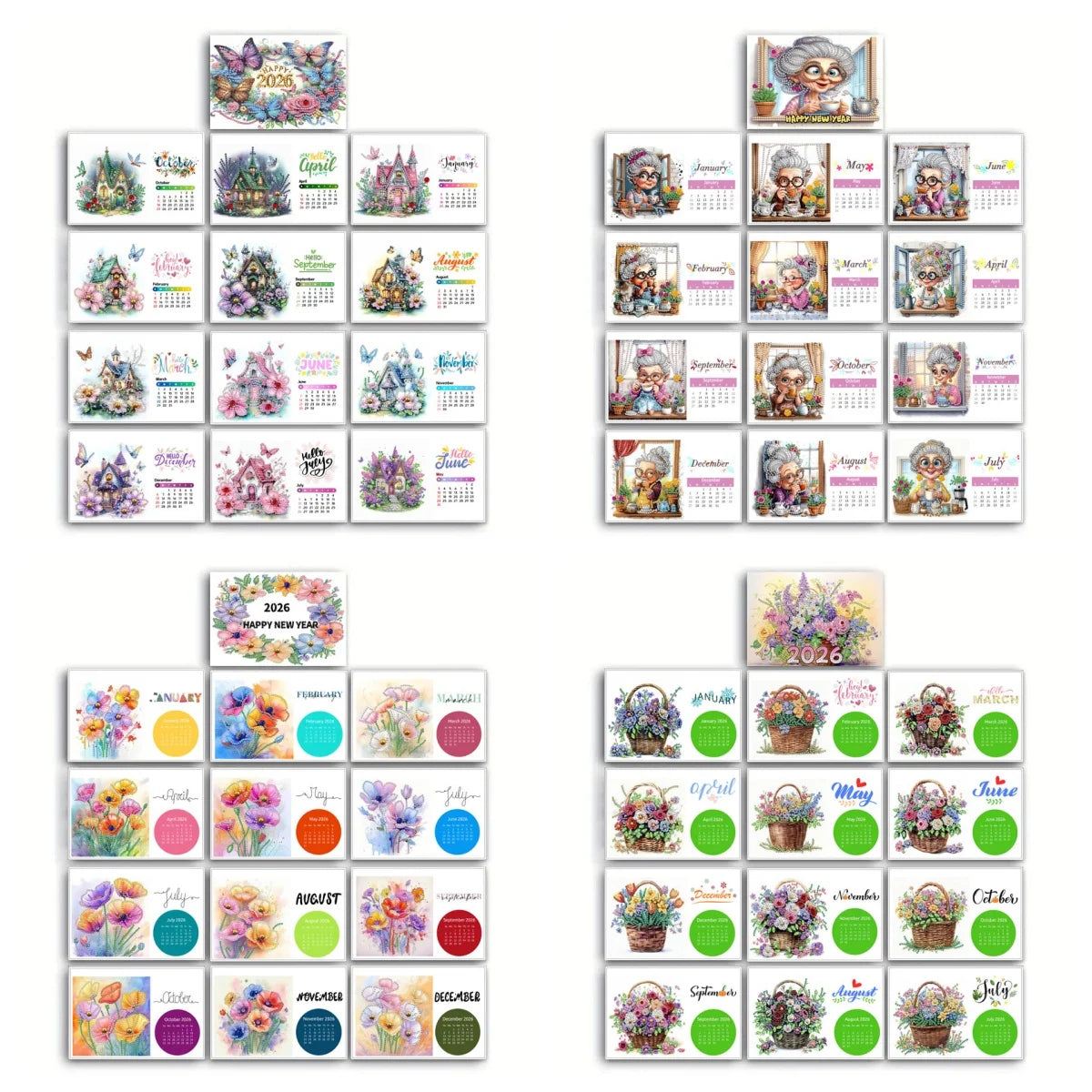 Diamond Painting Kalender 2026 met Oma, Huis en Bloemenpatroon