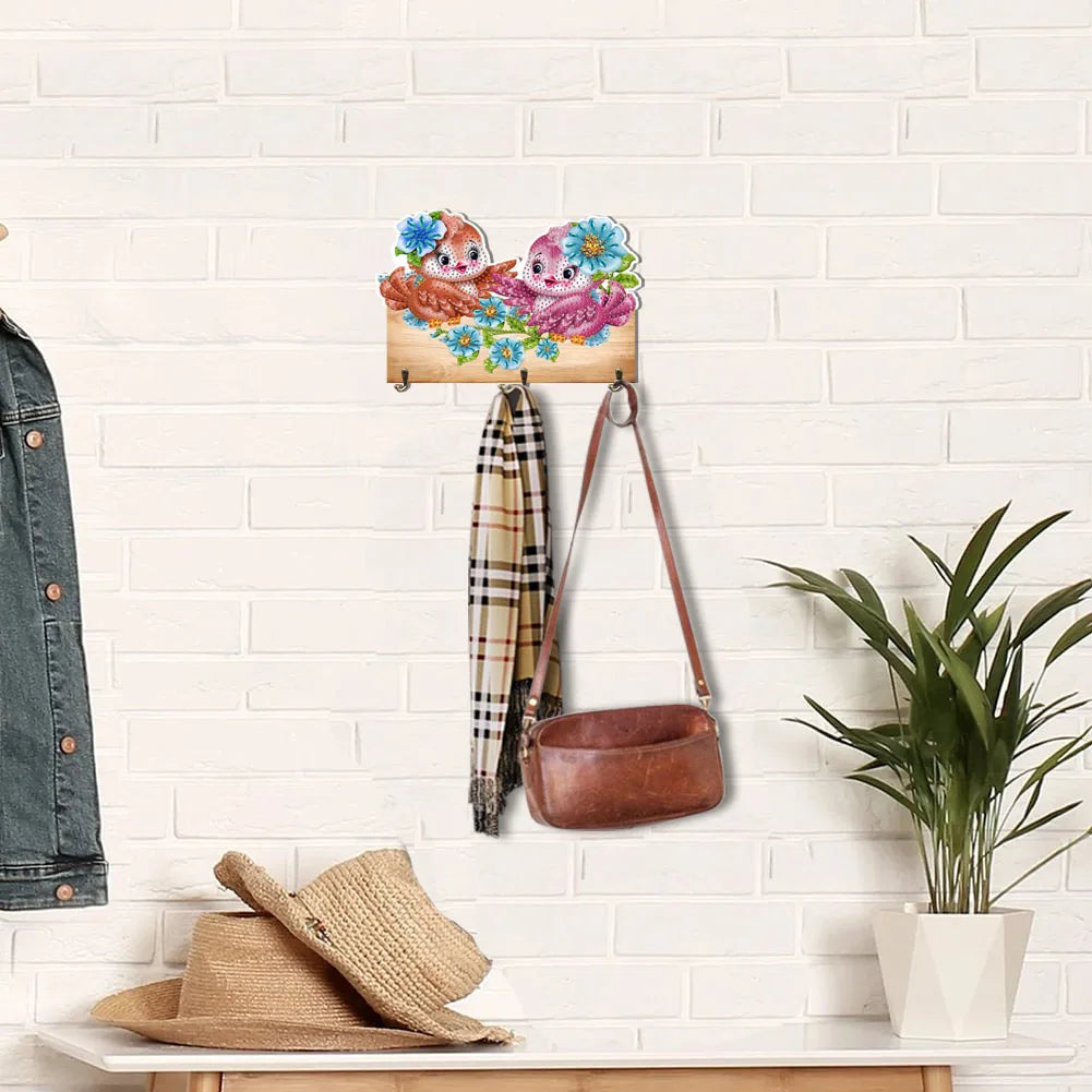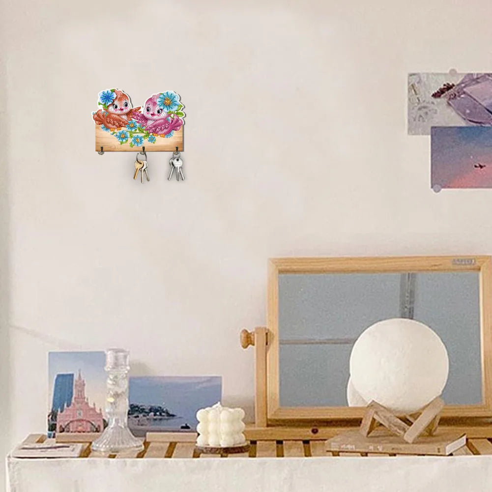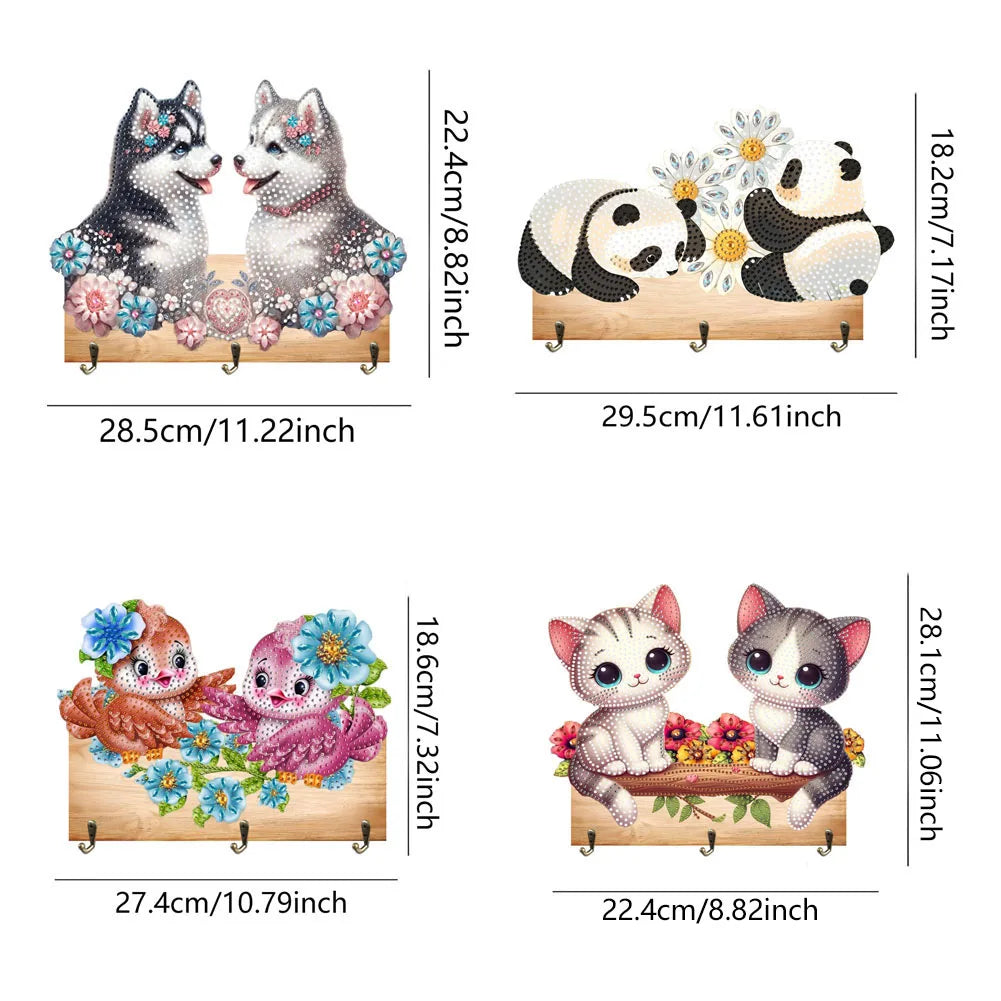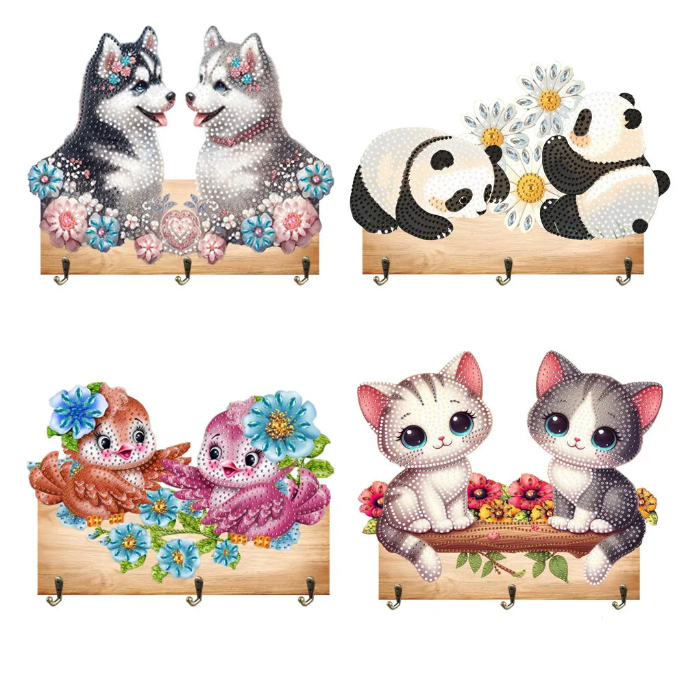 Diamond Painting Kapstok/Sleutelrek – Houten Haakjes met Schattige Dieren