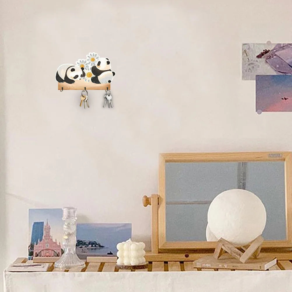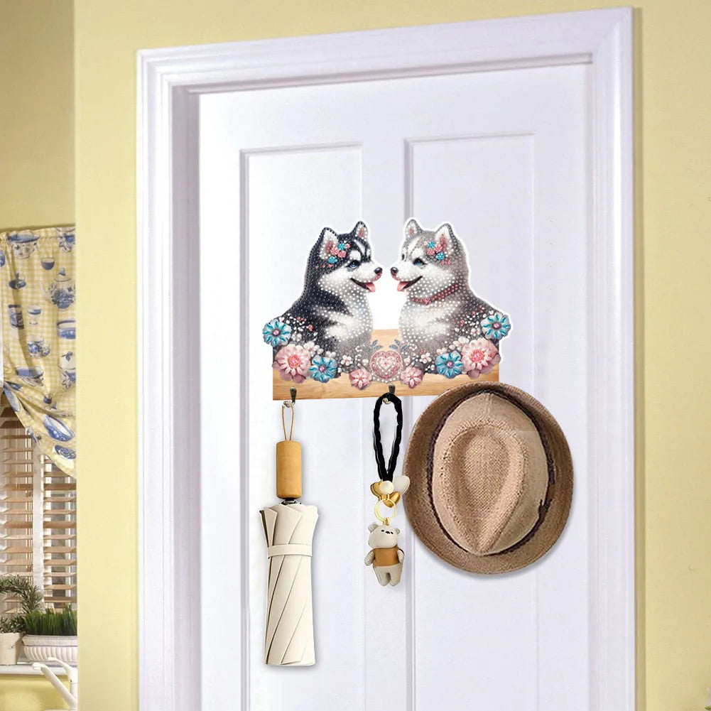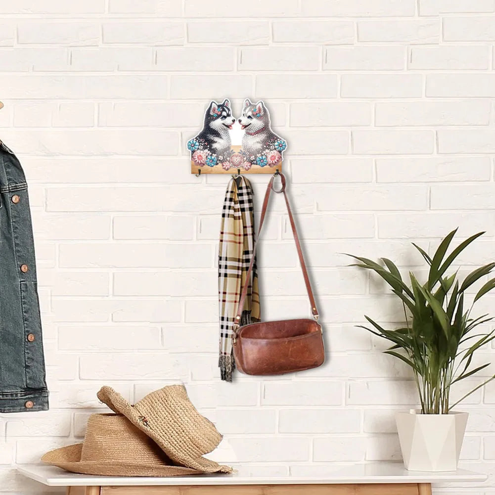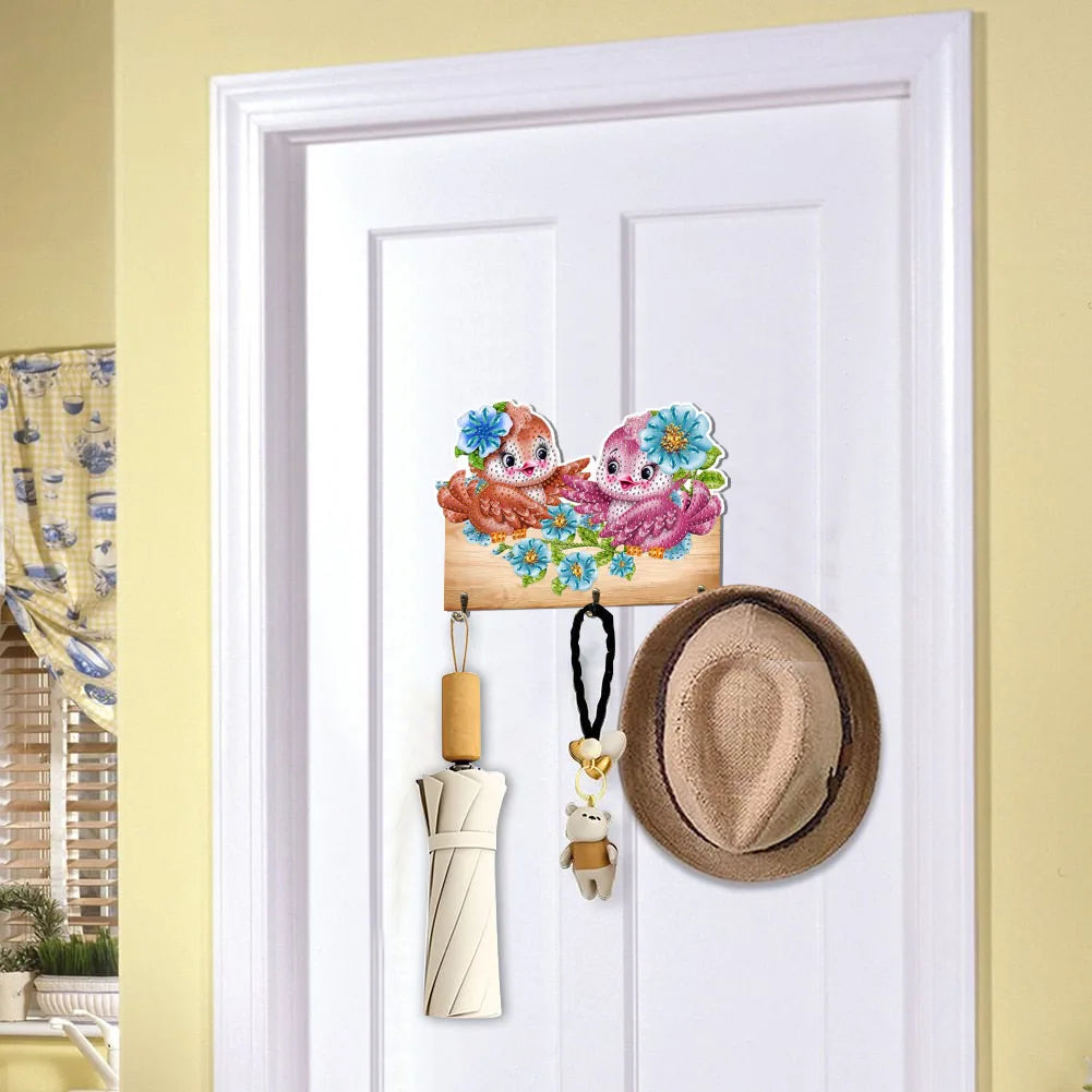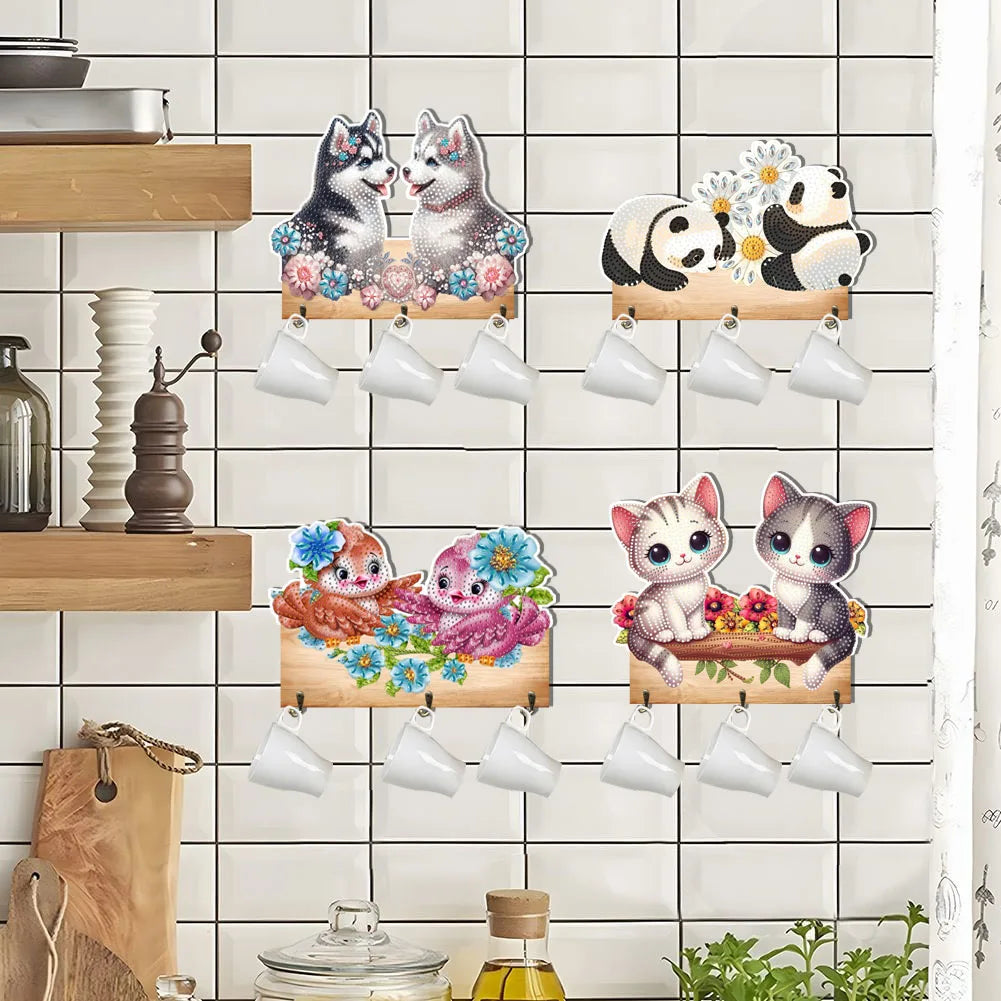 Diamond Painting Kapstok/Sleutelrek – Houten Haakjes met Schattige Dieren