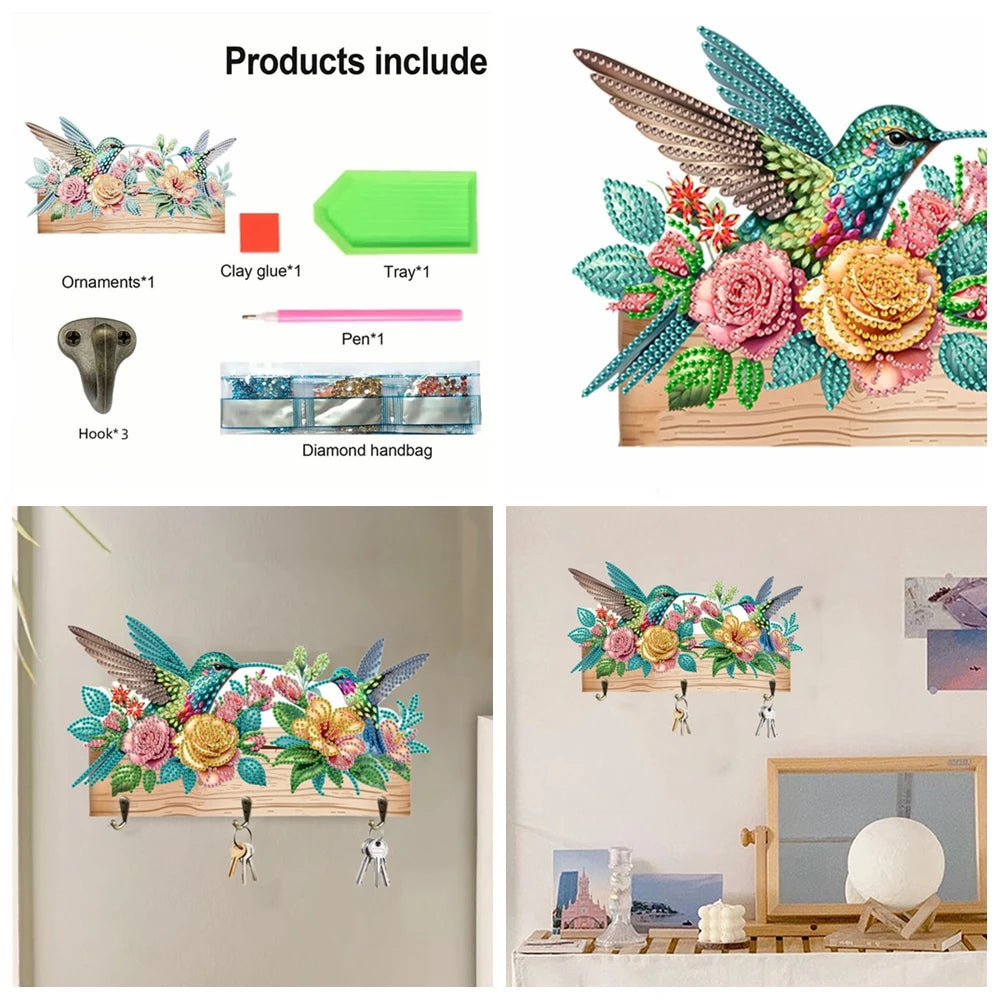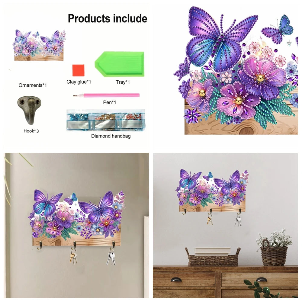 Breng een vleugje creativiteit en functionaliteit in je interieur met deze prachtige Diamond Painting Kapstok/Sleutelrek! 🎨✨