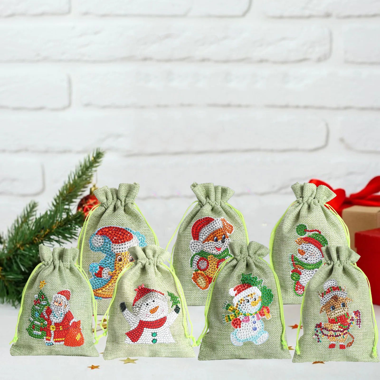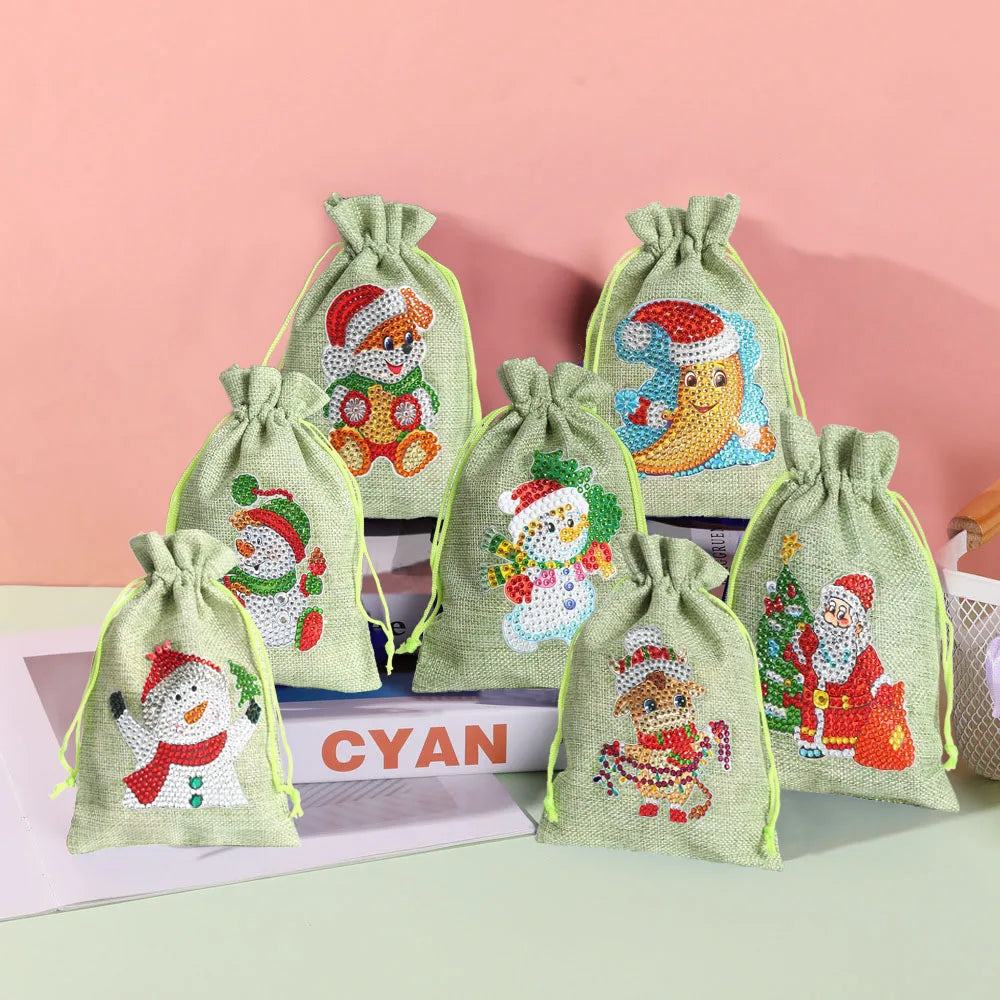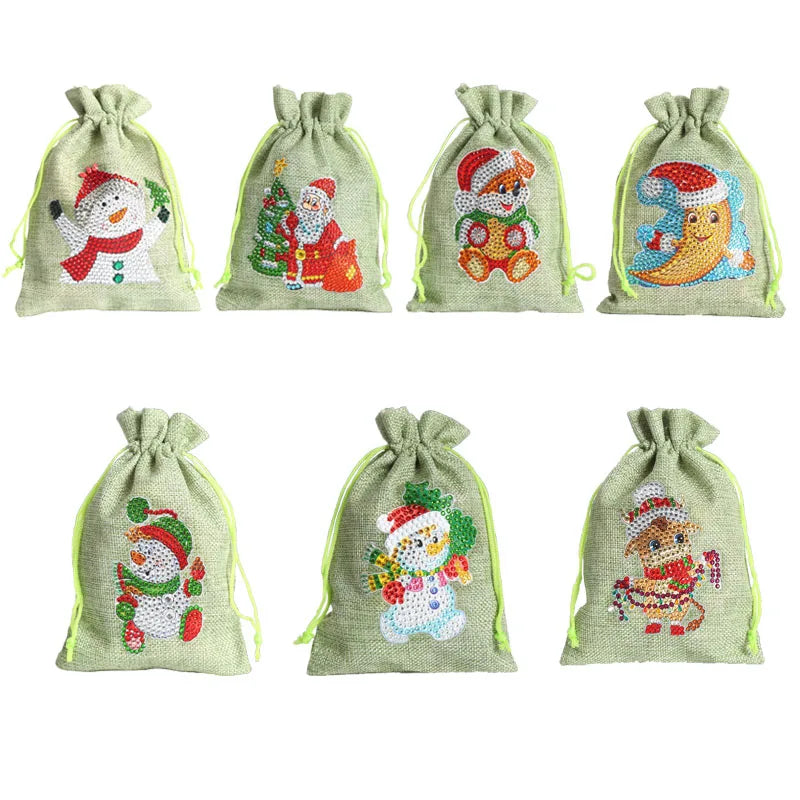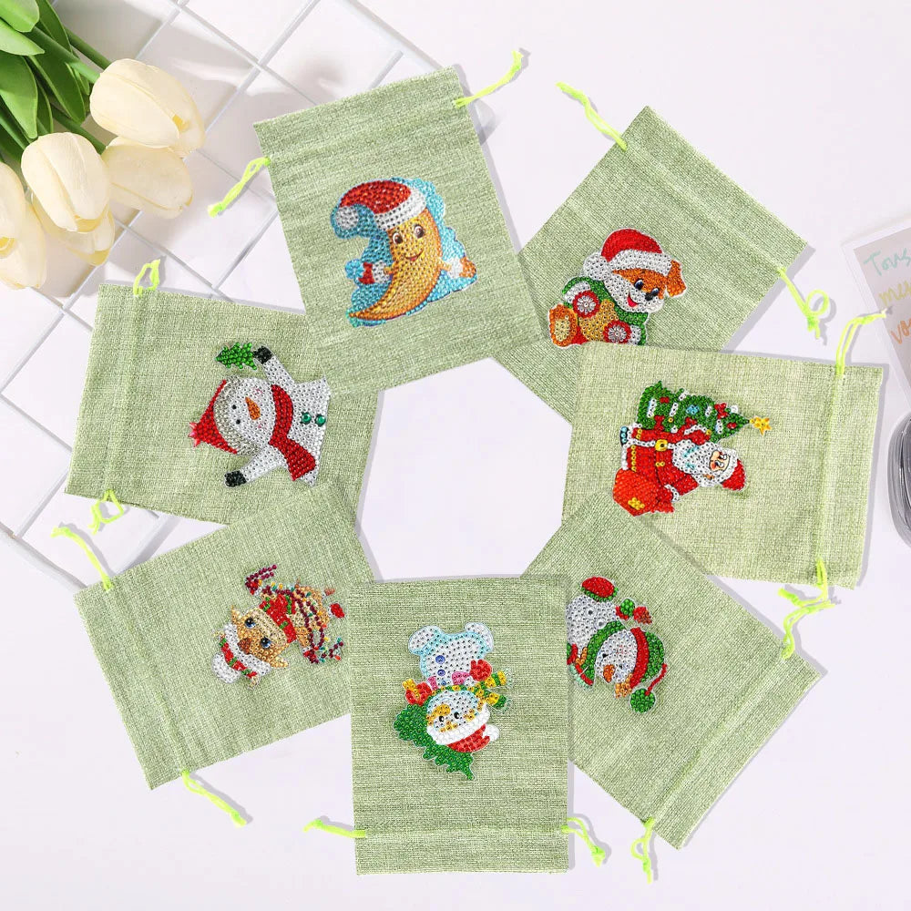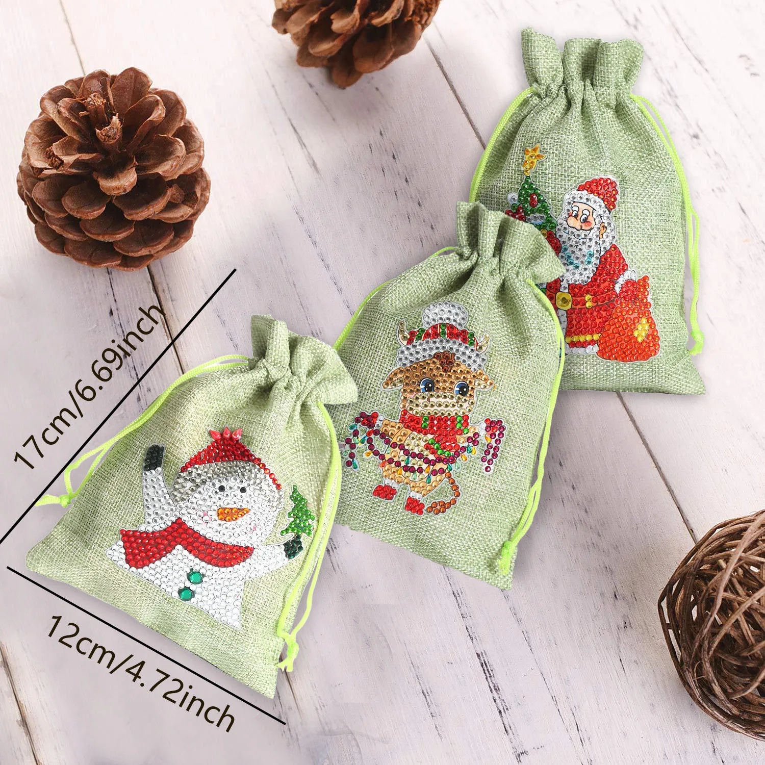 Diamond Painting kerst knutselset - linnen snoepzakje en trekkoord