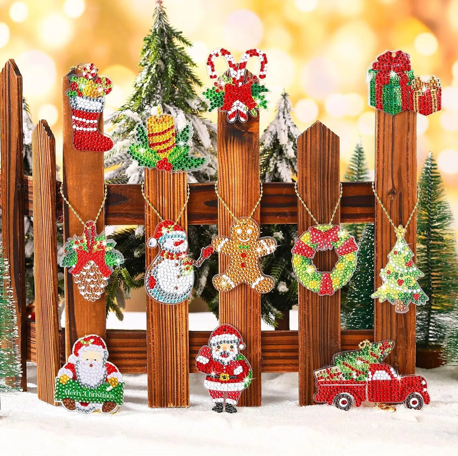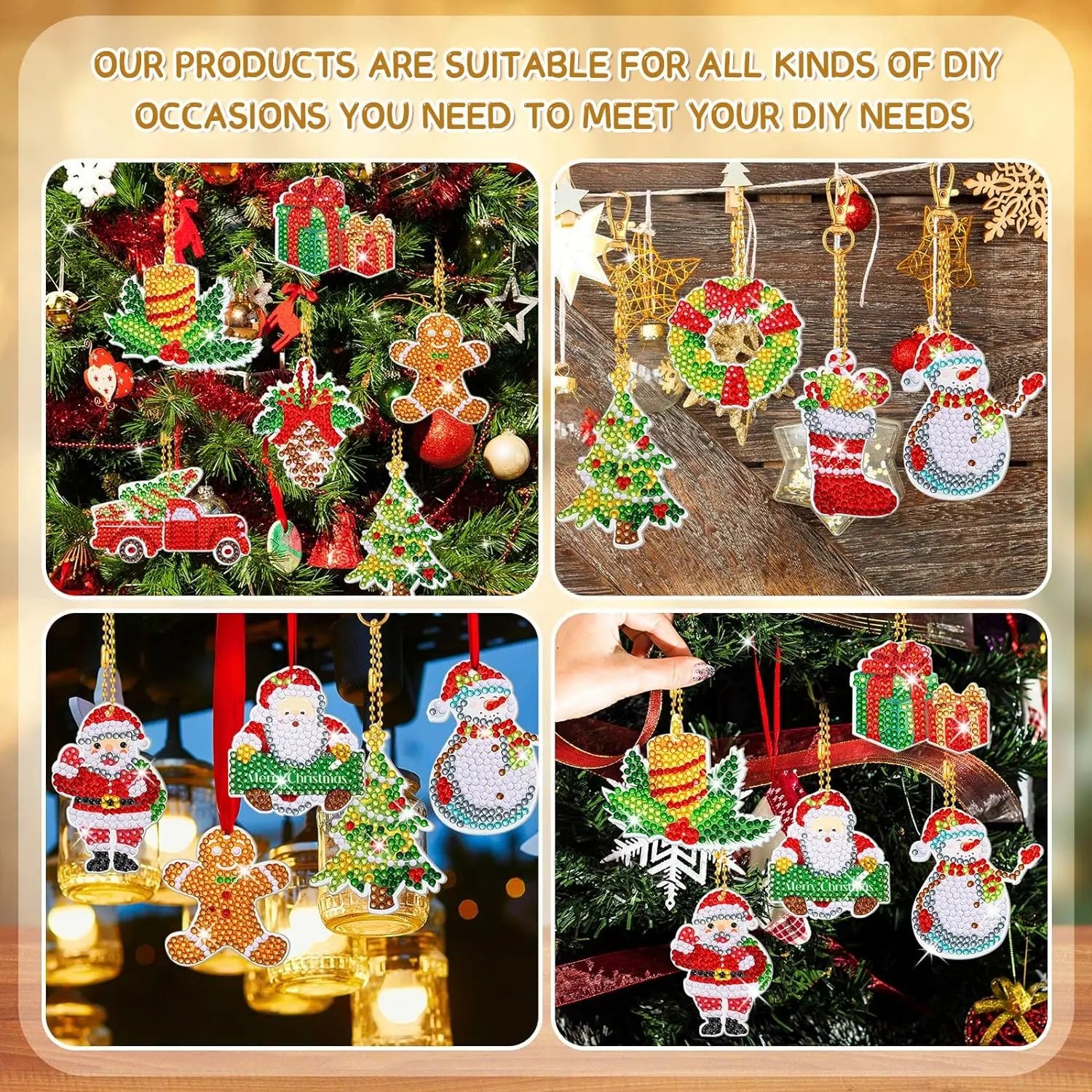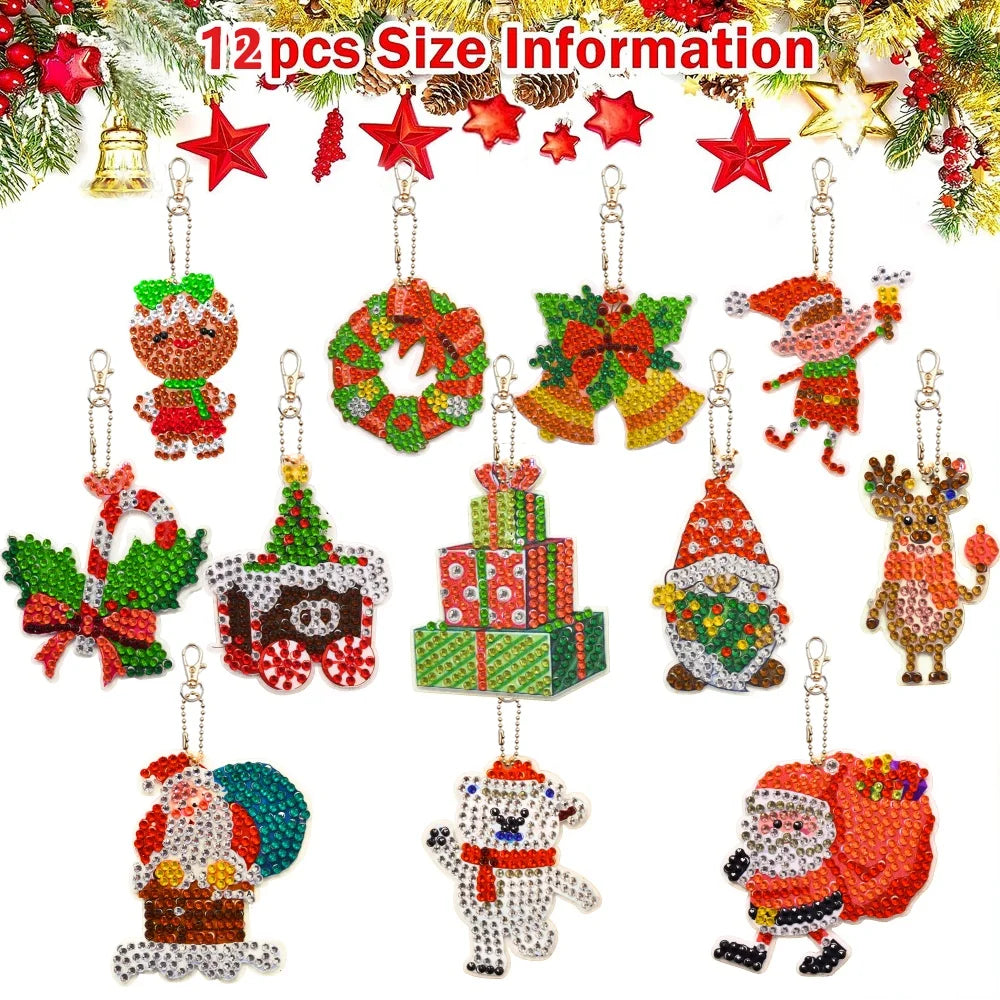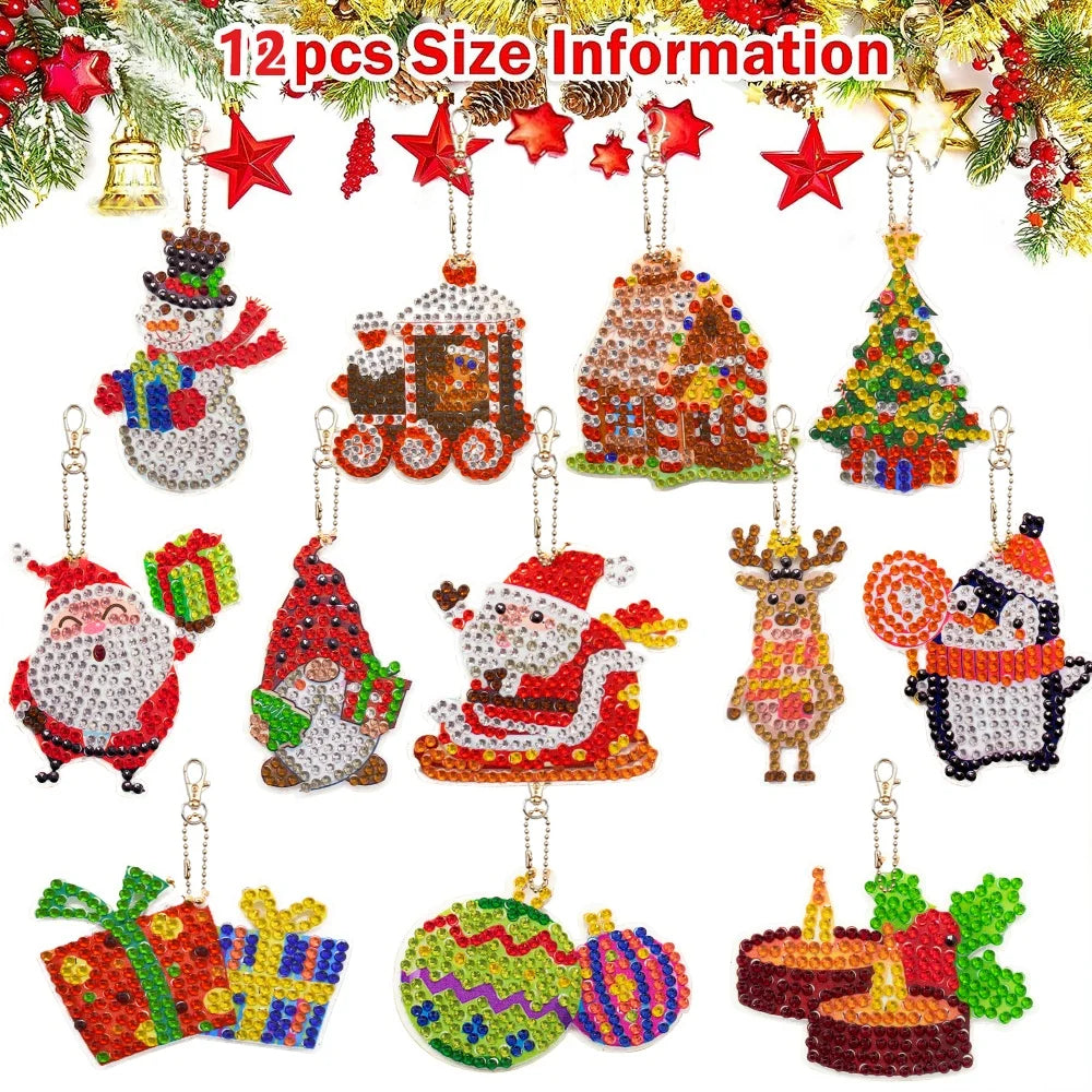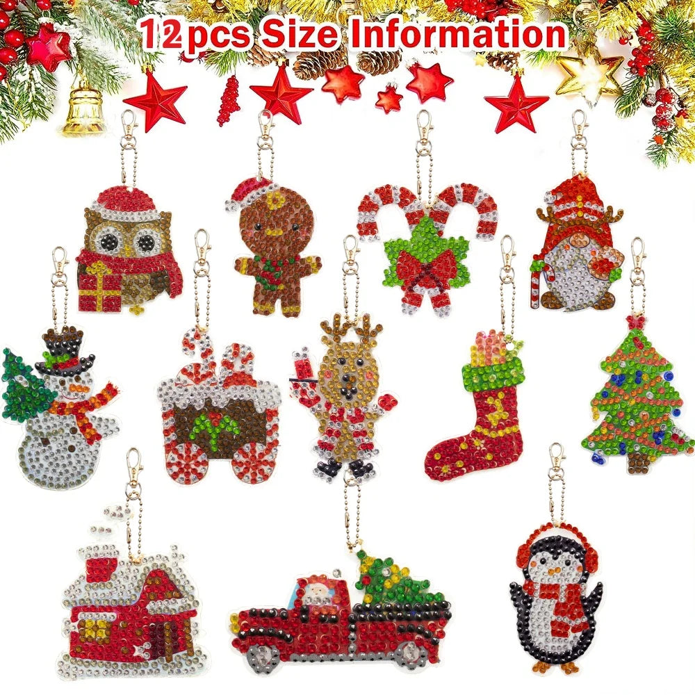 Diamond Painting Kerst Sleutelhangers – 12-delige Dubbelzijdige Set