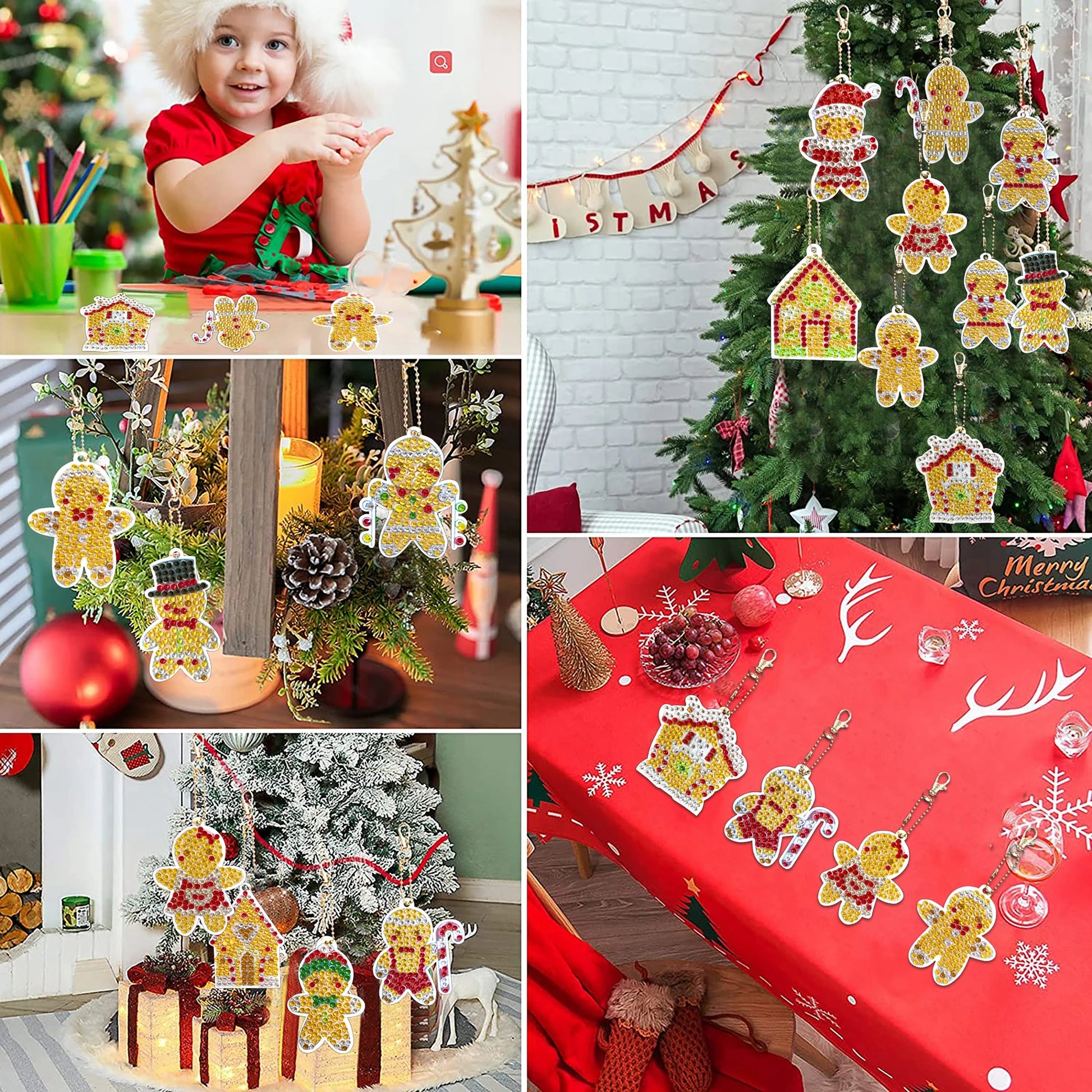 Diamond Painting Kerst Sleutelhangers - 12 Stuks - Gingerbread