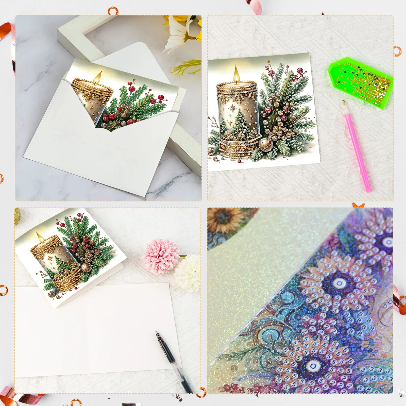 Met deze set van 12 Diamond Painting kerstkaarten verras je vrienden en familie op een bijzondere manier. Elke kaart wordt voorzien van glinsterende steentjes die het ontwerp tot leven brengen. Het resultaat is een feestelijke en persoonlijke kaart die veel meer uitstraling heeft dan een standaard wenskaart.