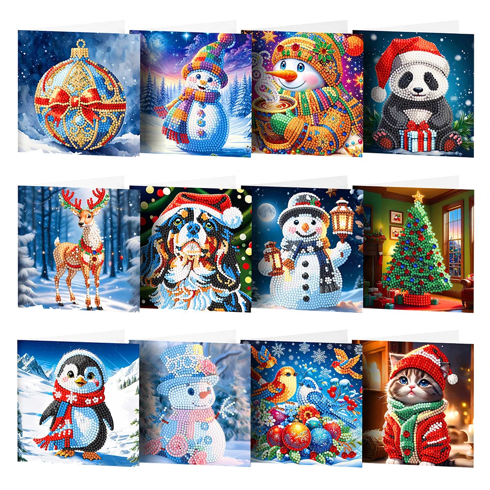Diamond Painting Kerstkaarten dieren – set van 12 kerstkaarten met steentjes