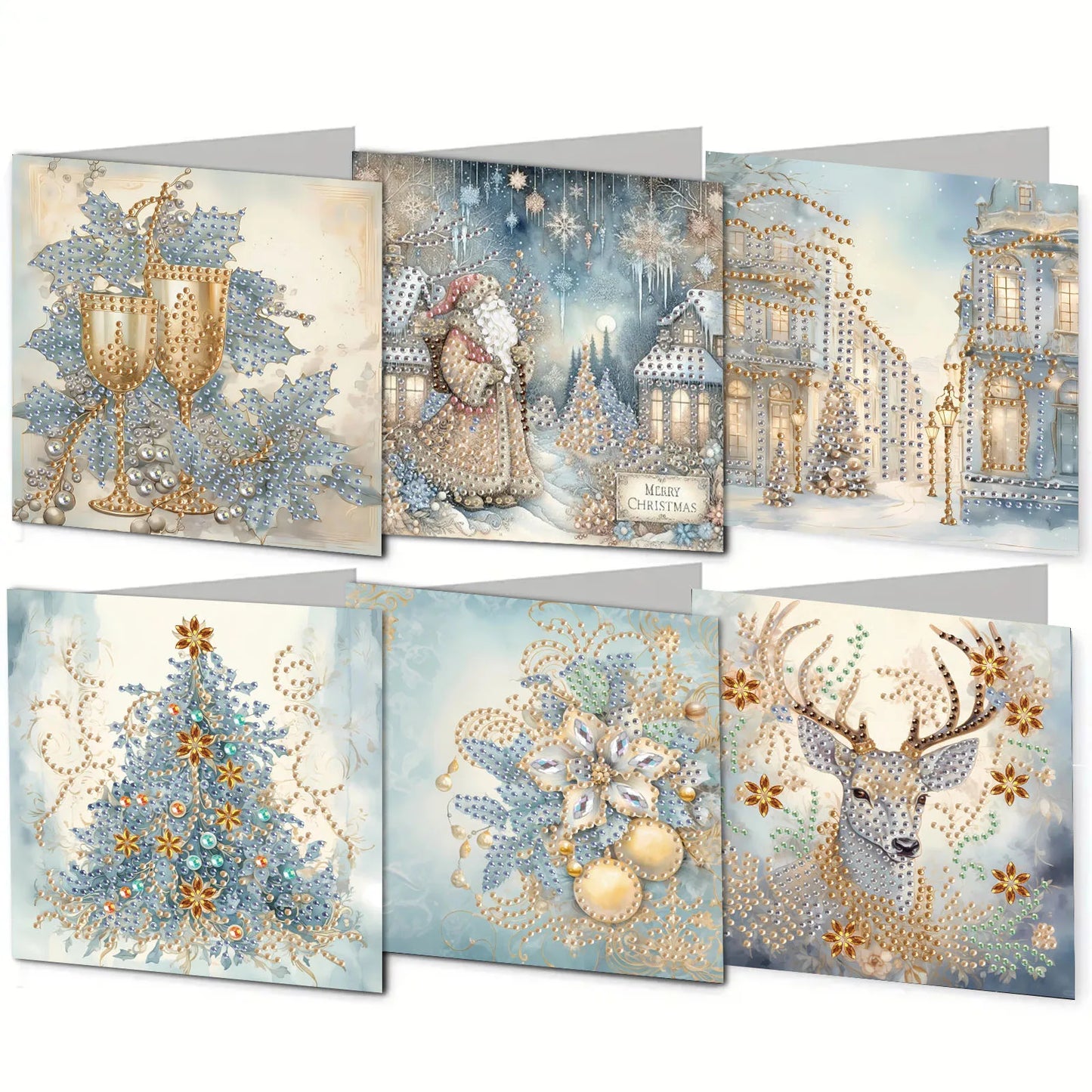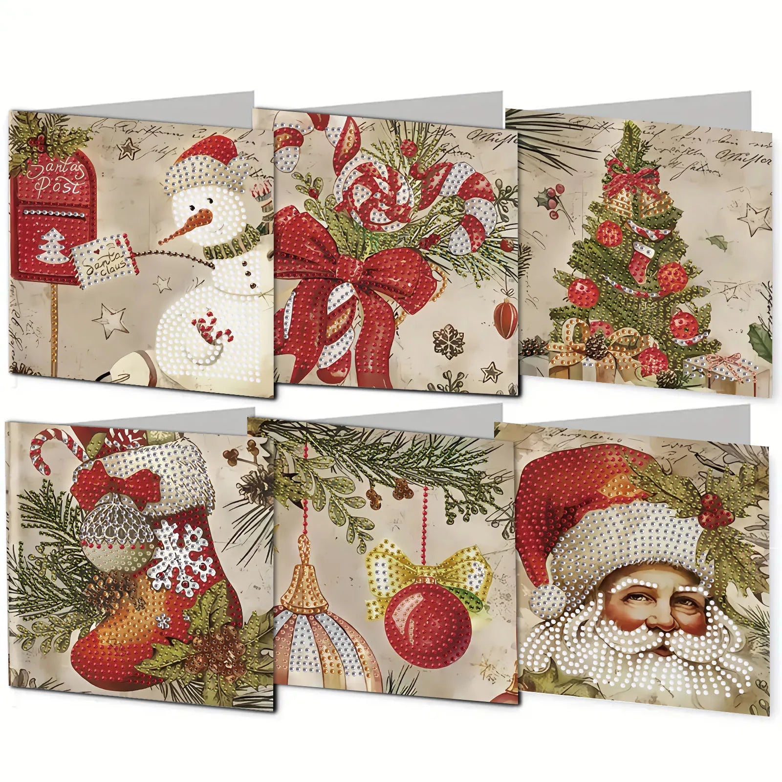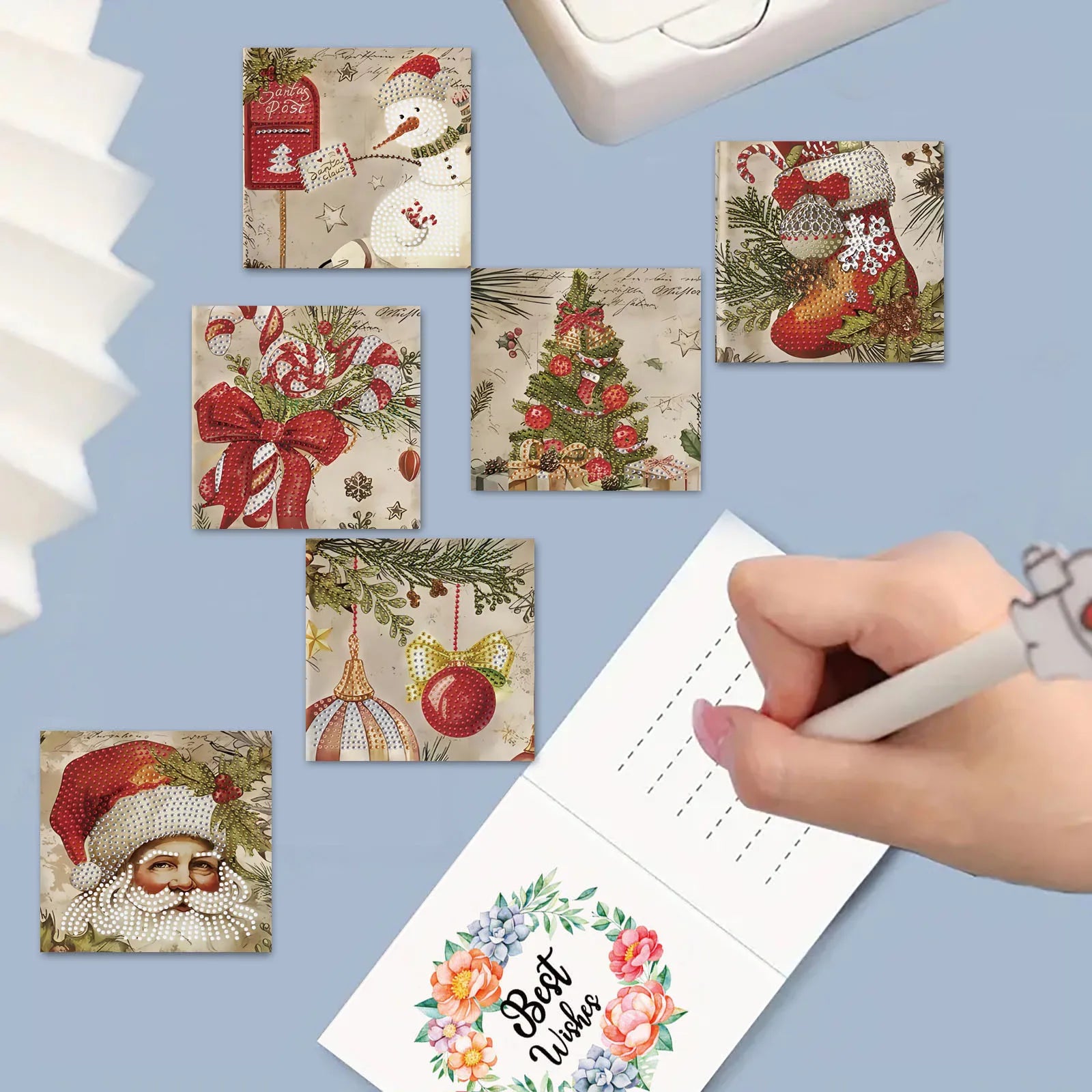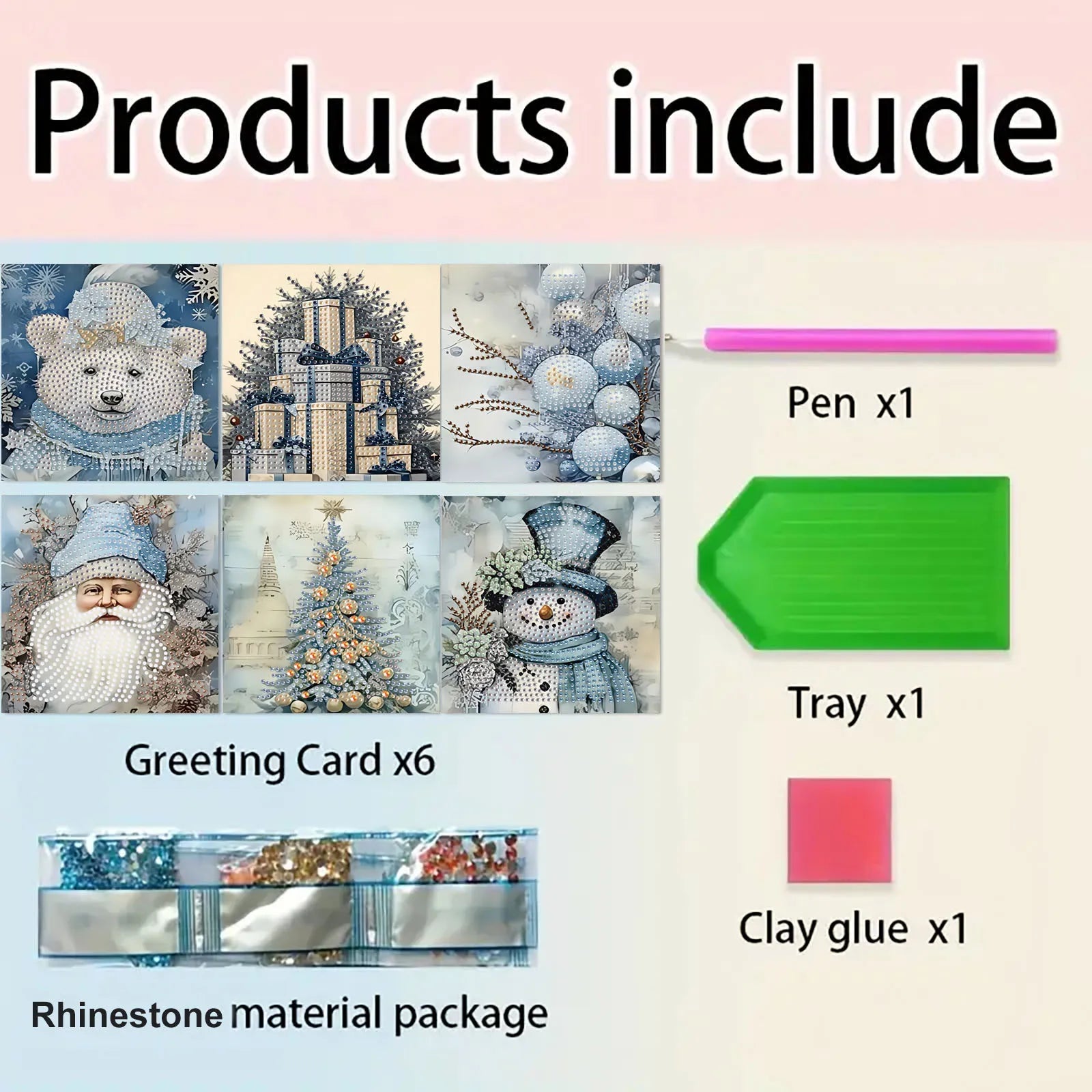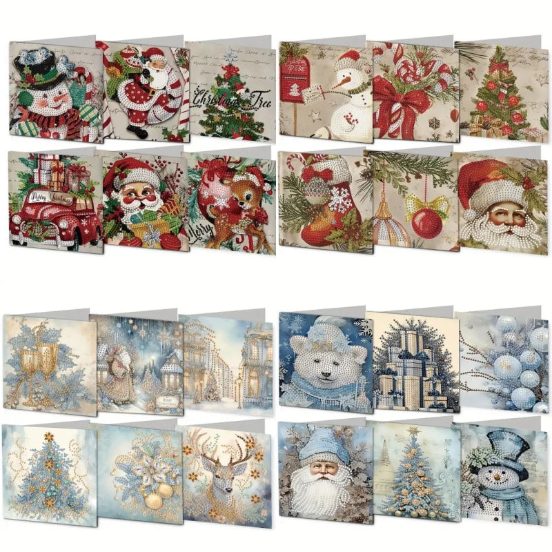 Diamond Painting Kerstkaarten set 6-delig met sneeuwpop thema