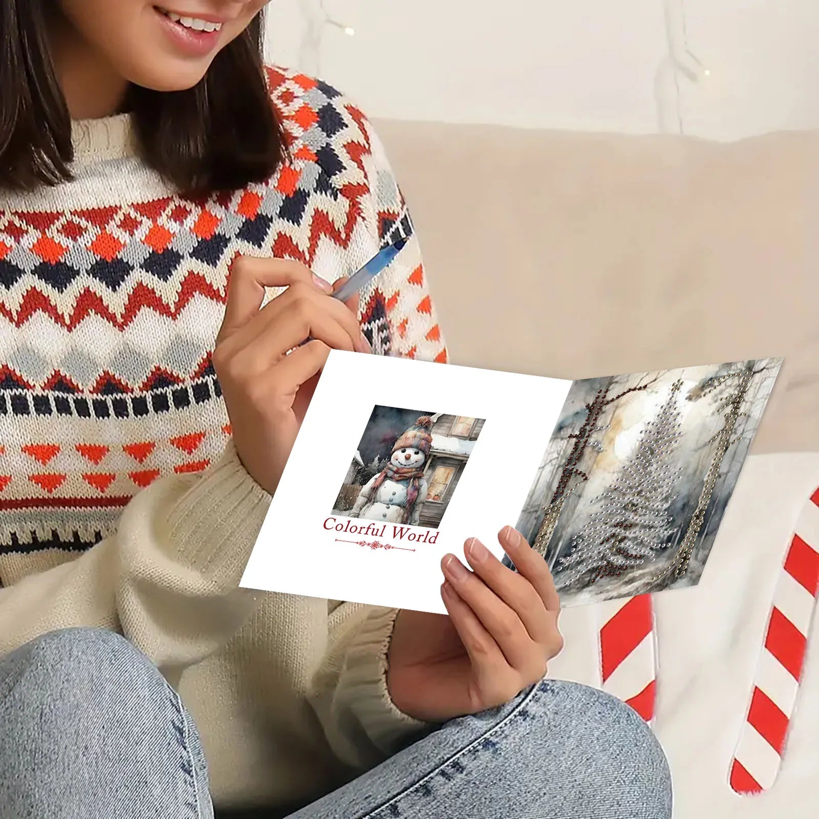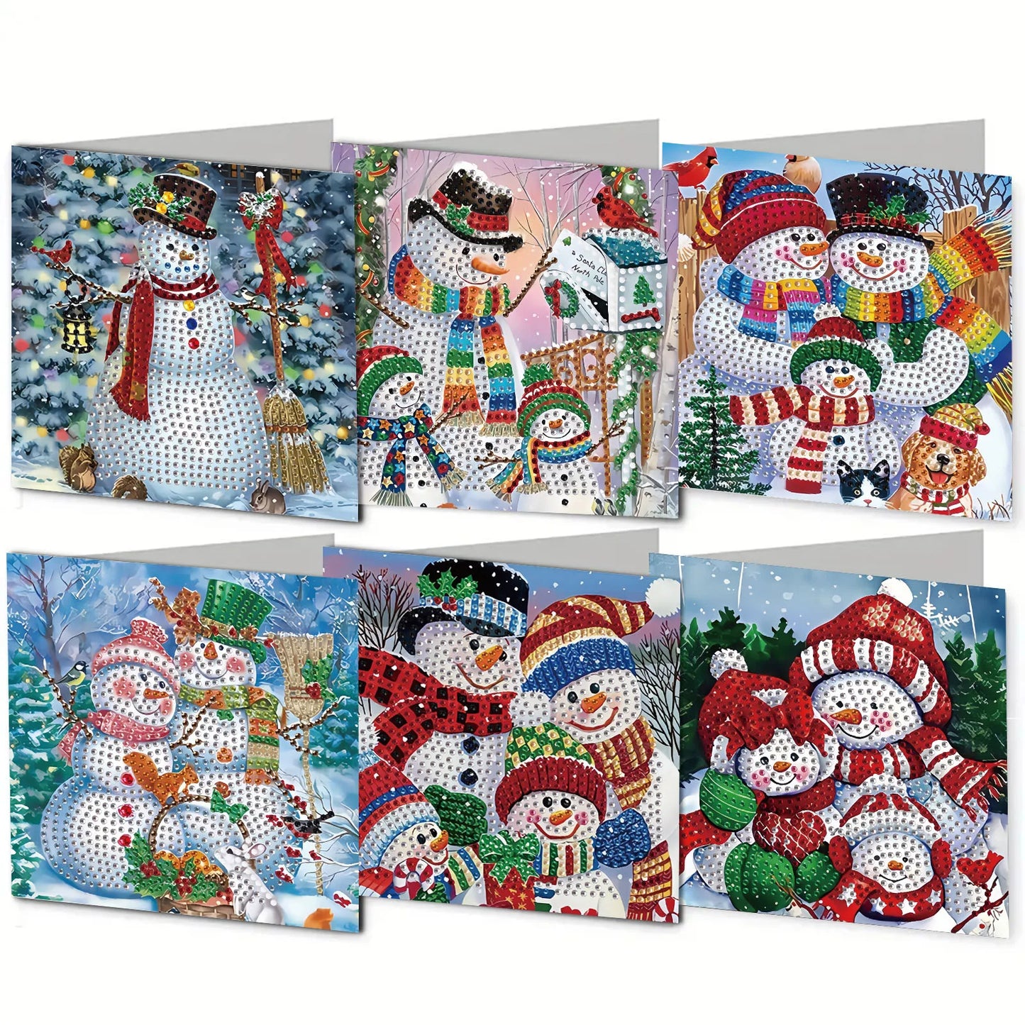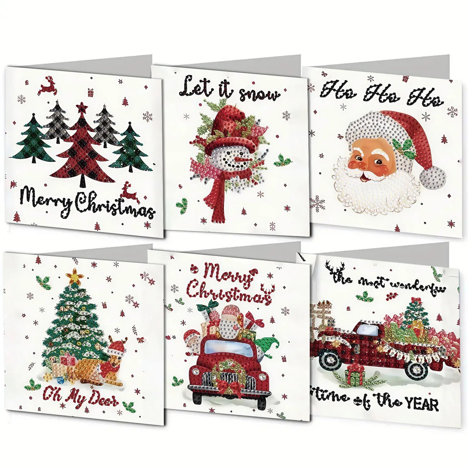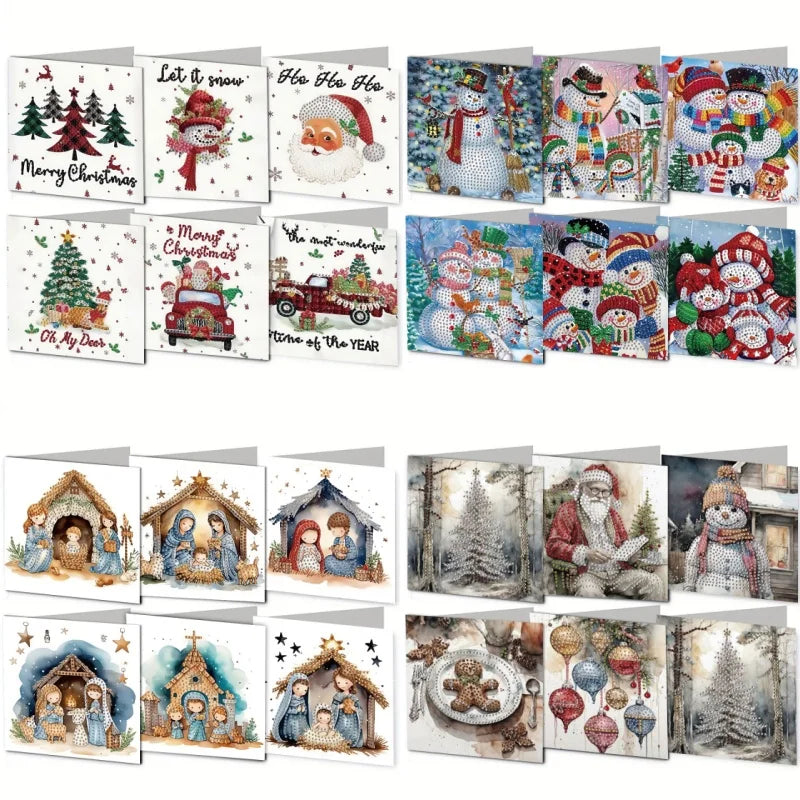 Diamond Painting Kerstkaarten set – 6 stuks feestelijke wenskaarten met strass steentjes