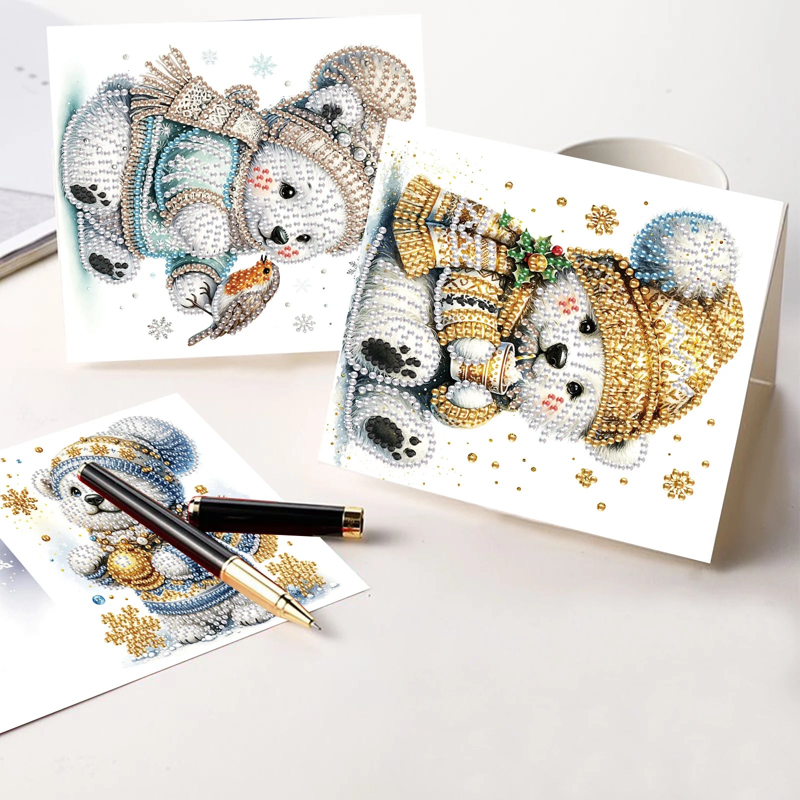 Met deze Diamond Painting Kerstkaarten set maak je jouw feestdagen nog specialer. De set bevat 6 prachtige kaarten met vrolijke winterse ontwerpen, waaronder een schattige beer die perfect past bij de warme en gezellige sfeer van het seizoen. Dankzij de fonkelende steentjes krijgen de kaarten een luxe uitstraling die meteen in het oog springt.